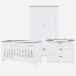 Tutti Bambini Rio 7 Piece Nursery Room Set With Shelves/Toy Box/Mattress β White/Dove Grey