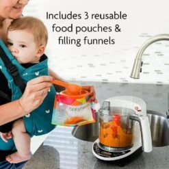 - Make, Serve and Store easily! The 800g bowl capacity works great for baby food prep β single portions and large preparation, with 3 reusable baby food pouches for feeding and storage included.