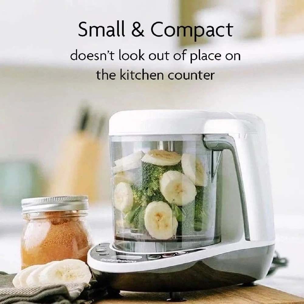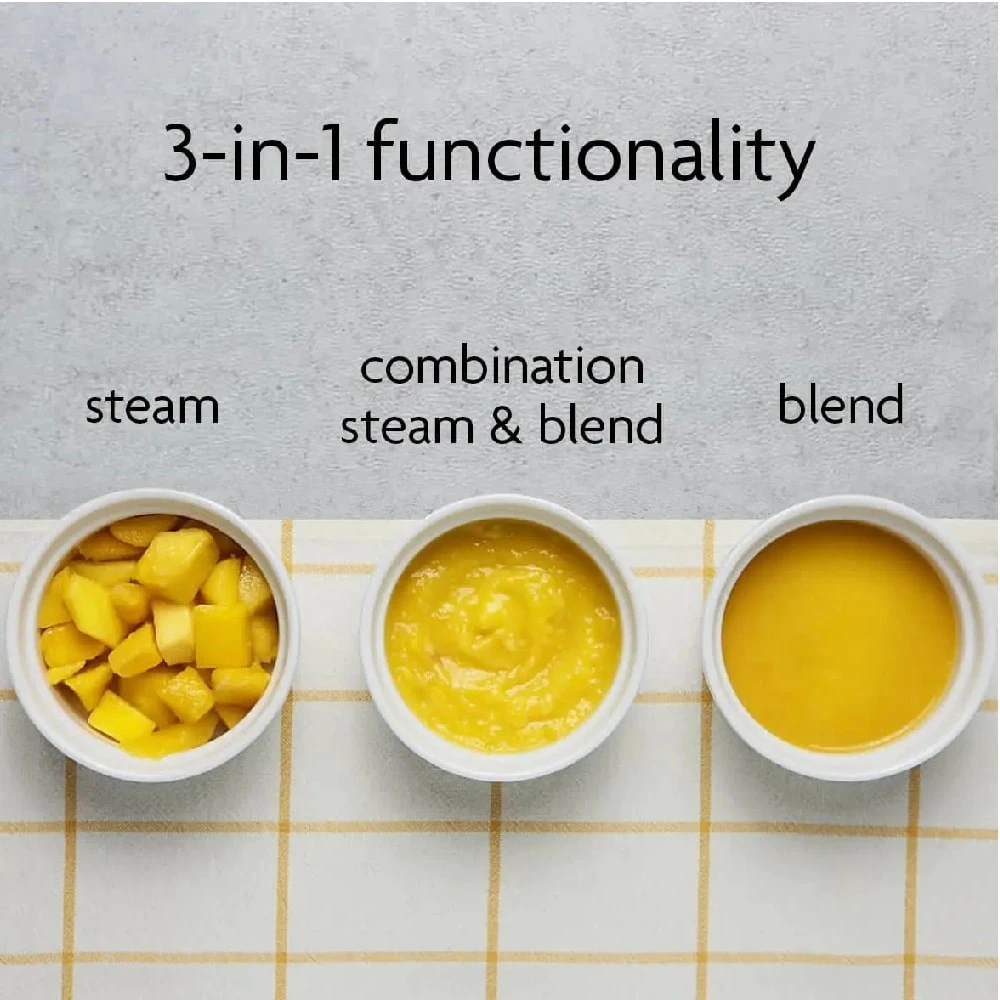 Saving time and energy, this weaning blender makes 3.5 cups of baby food in under 10 minutes! - Prepares food to the perfect consistency with the 3-in-1 functionality: βSteam and Blendβ, βSteam Onlyβ and βBlend Onlyβ. This flexibility saves parents the cost of store brought ready meals.