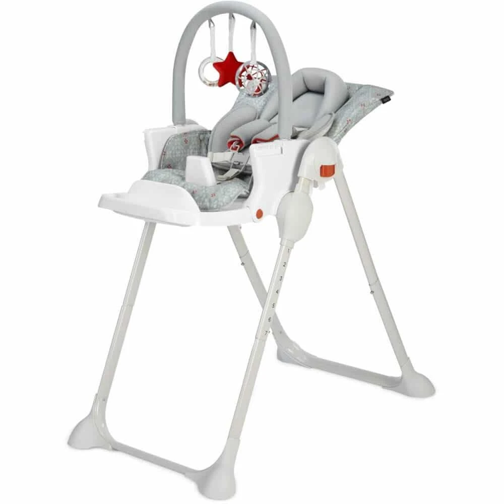 Conveniently bring your little one to the dining table from birth in the Taima highchair. The adjustable height feature in 7-positions and full recline position make this highchair suitable from birth while the toy arch keeps baby entertained while you eat. Taima has two versions available: laminated or coated version, both of them are washable with a damp cloth.