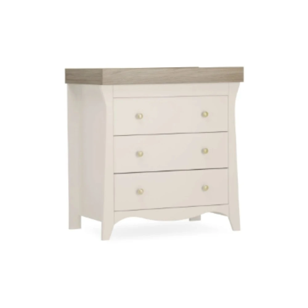 The Clara Dresser Changer provides both storage and a changing station in one stylish product.ย Has 3 roomy drawers, perfect for storing everything from nappies and wipes to baby sleepsuits and muslins.ย With a removable changing station, Clara can be converted to a standalone dresser once your little one is out of nappies.