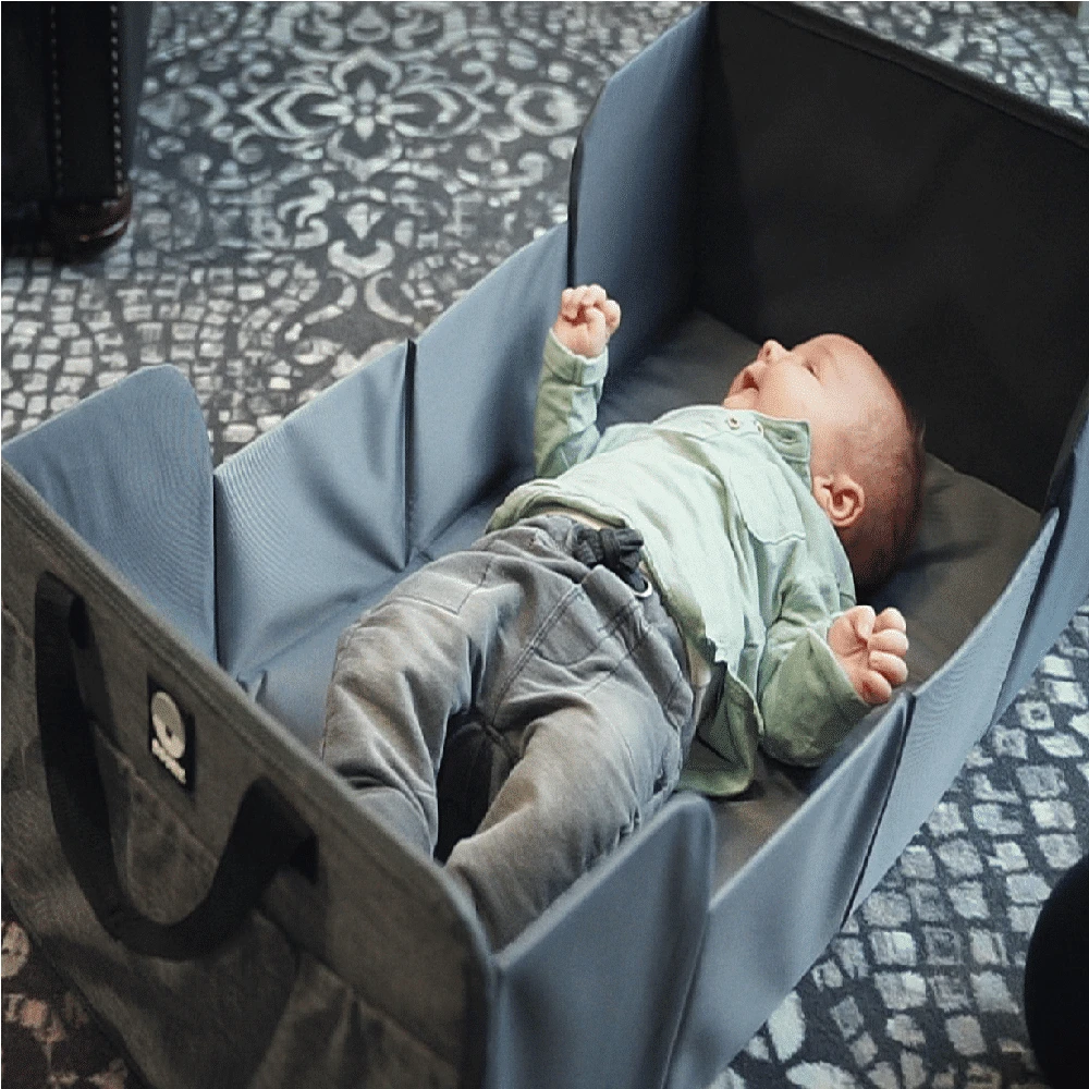 The Dooky Travel Cot Grey is a super lightweight and foldable mattress thatβs easy to fold, allowing the baby to lay down or sleep comfortably everywhere. Travelling and the little one is tired. Spending a day at the beach and it is time for a nap, On a road trip When having a long car ride, it offers a comfortable place to lay down during your break. Take the Traveller with you when going for a coffee or picnic to ensure thereβs always a safe comfy place for your little one lie down or play in. The foldable mattress can be used until the baby can sit independently.