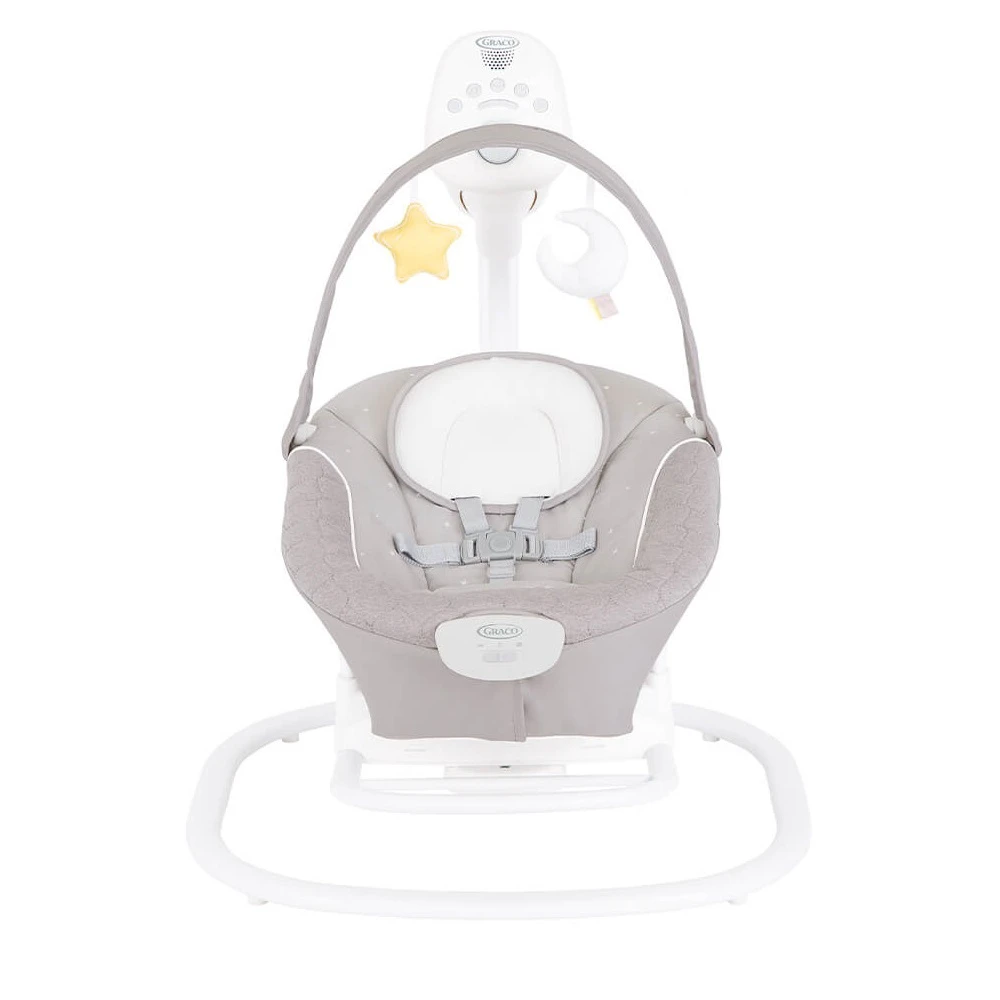 Graco SoftSway 2in1 Swing/Rocker β Starlight is a perfect solution for parents who crave a silent and versatile soother. Gracoβs smart swing relies on the power of magnets. This results in a more reliable swing that has no wear and tear over time, is consistently smooth from start to finish and does it all completely silently.