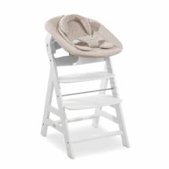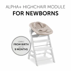The 2-in-1 Alpha Bouncer comes with two functions.Β It can be used as a bouncer on the included frame.Β Or in highchair module for newborns on the Alpha+ wooden highchair, allowing your baby to be at eye level and at the heart of the family from day one.