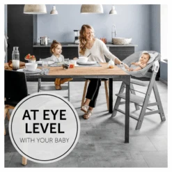 The bouncer easily slides onto the side bars of the tilt-proof highchair and can be used right away.Β Your baby will be right next to you and at eye level, strengthening your bond and making feeding easier. The 3- point harness helps keep your little one safe.