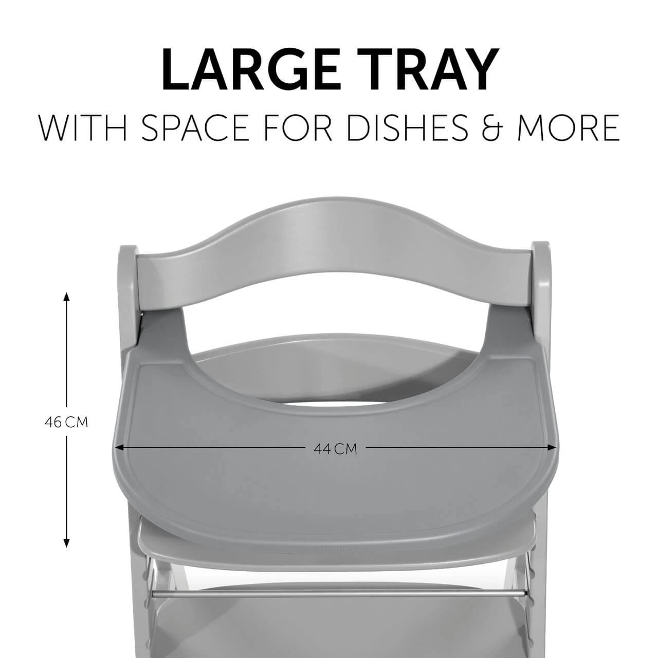 The Hauck Alpha Click Tray Grey is one of the many accessories available for the Alpha+ wooden highchair. Thanks to the click system, the tray easily slides on to the grow-along chair with one hand and safely clicks into place – no tools needed – allowing maximum flexibility during mealtimes.
