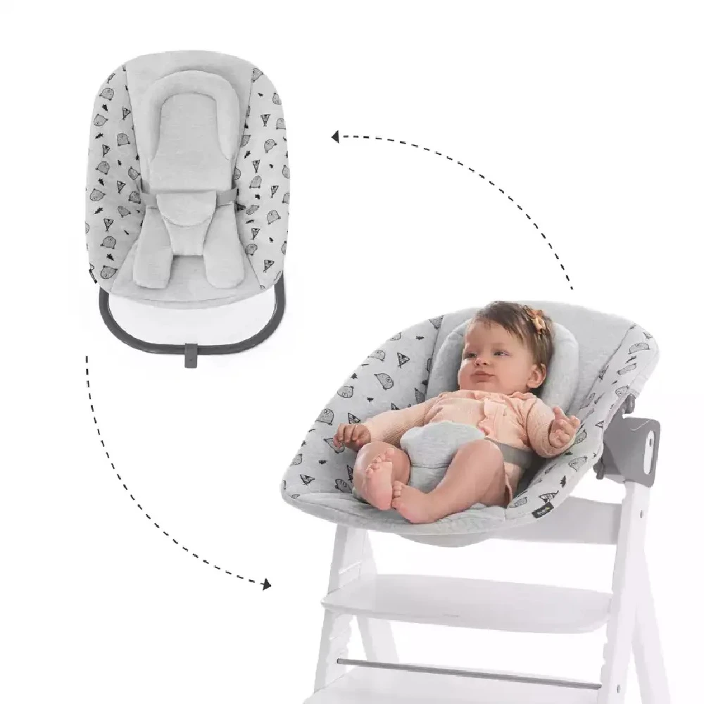 Whether having a leisurely dinner or a cappuccino, the Hauck Alpha Highchair Bundle Grey ensure that you and your baby are always on the same level. Your babyβs delicate head is protected by the newborn attachment with 3-point belt.Β The cuddly cover is extra comfy against your babyβs skin, and easy to wash too!