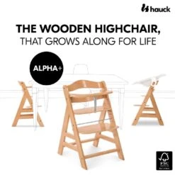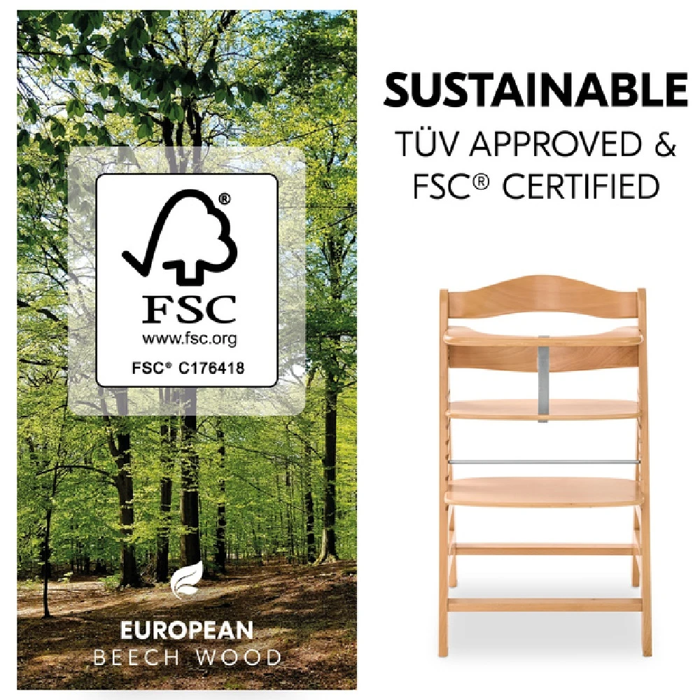Hauck Alpha+ Natural Wooden Highchair is made of European beech wood, which comes from FSC®-certified forests, which value sustainable and ecologic forestry to protect plants and animals.