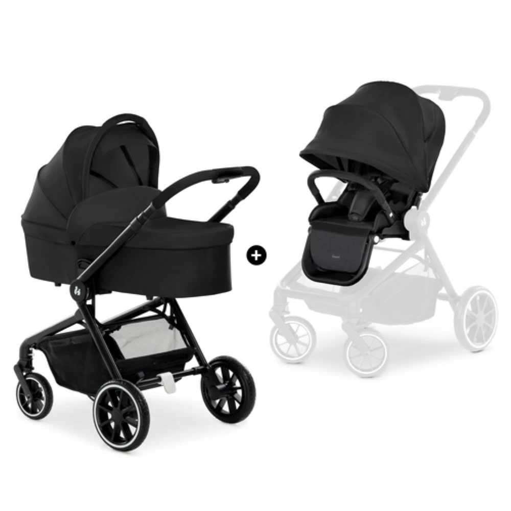 The Hauck Move so Simply Duo Set β Black offers you a comfortable, safe pram and pushchair for your child up to 4 years, which can support up to 25 kg (22 kg child + 3 kg basket). The suspension and smooth-running wheels provide a silent and safe ride on narrow and uneven path, with large wheels at rear along with swivelling and lockable front wheels.