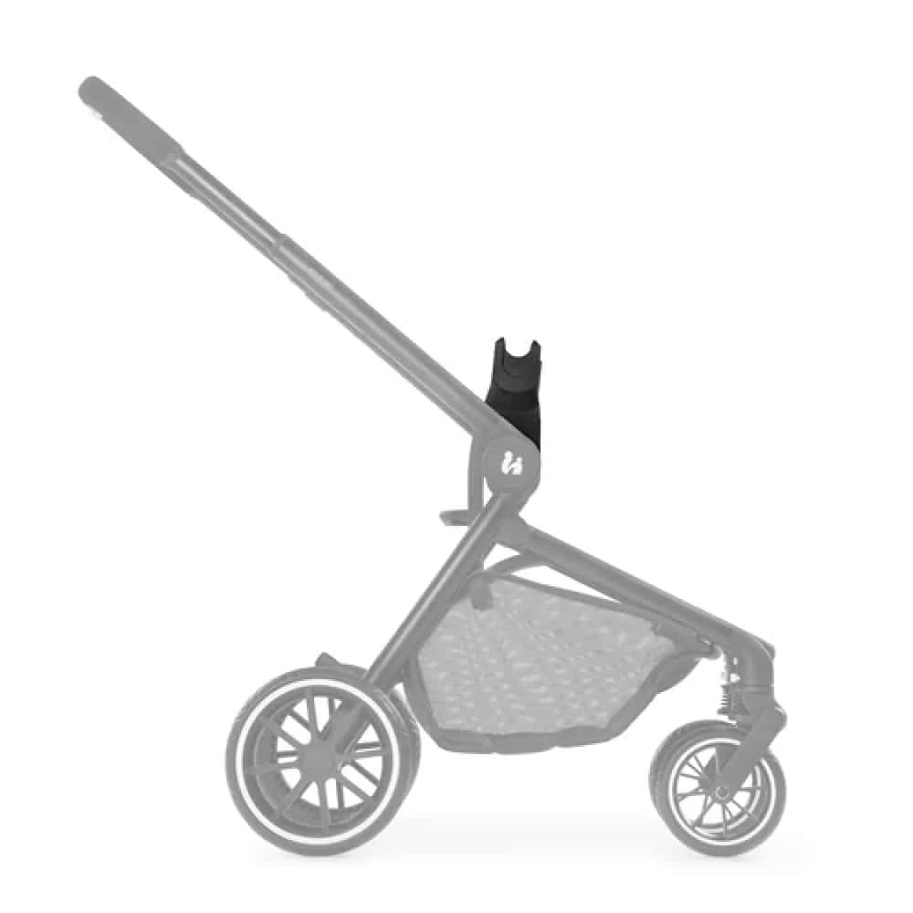 The adapters are slipped on the pushchair frame and the car seat on top of them, transforming it into a practical travel system. As a result, mom and dad can comfortably make short shopping trips and easily walk through the smallest of shops.