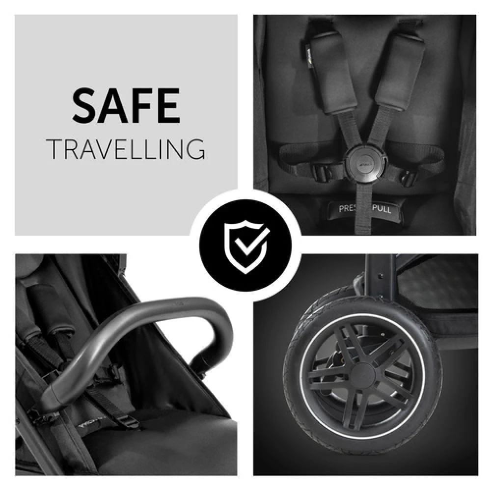 Thanks to the height-adjustable handlebar with cup holder, parents of different height can also benefit from a comfortable, back-friendly walk. Compared to other pushchairs, the Rapid 4D can be used longer. In combination with the seat and the basket, it offers your child a comfortable drive up to 22 kg or 4 years and accommodates up to 3 kg of shopping. The footrestβs fabric and the safety barβs surface are made of durable and easy-care materials, making your Rapid 4D look well-maintained in no time despite muddy shoes and sticky hands. The Rapid 4D comes with a safety package including a padded 5-point harness, a removable protection bar that facilitates your childβs entry and exit, as well as white lines on the wheels that provide more visibility when it gets dark.