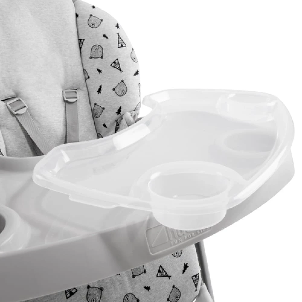 The tray element may be removed and cleaned. The 5-point harness and the middle bar integrated in the seat give your child a strong hold. Toys and other things can be stored away in the basket below. Thanks to the casters, Sit n Relax 3in1 can be moved from one room to another, when not needed, it can be folded down and stored away.