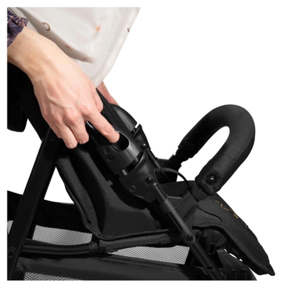 The seat is softly padded and its backrest can be adjusted in a lying position by pulling the strap.Β The footrest can be adjusted to suit your little oneβs needs.Β The canopy protects against sun, wind and rain.