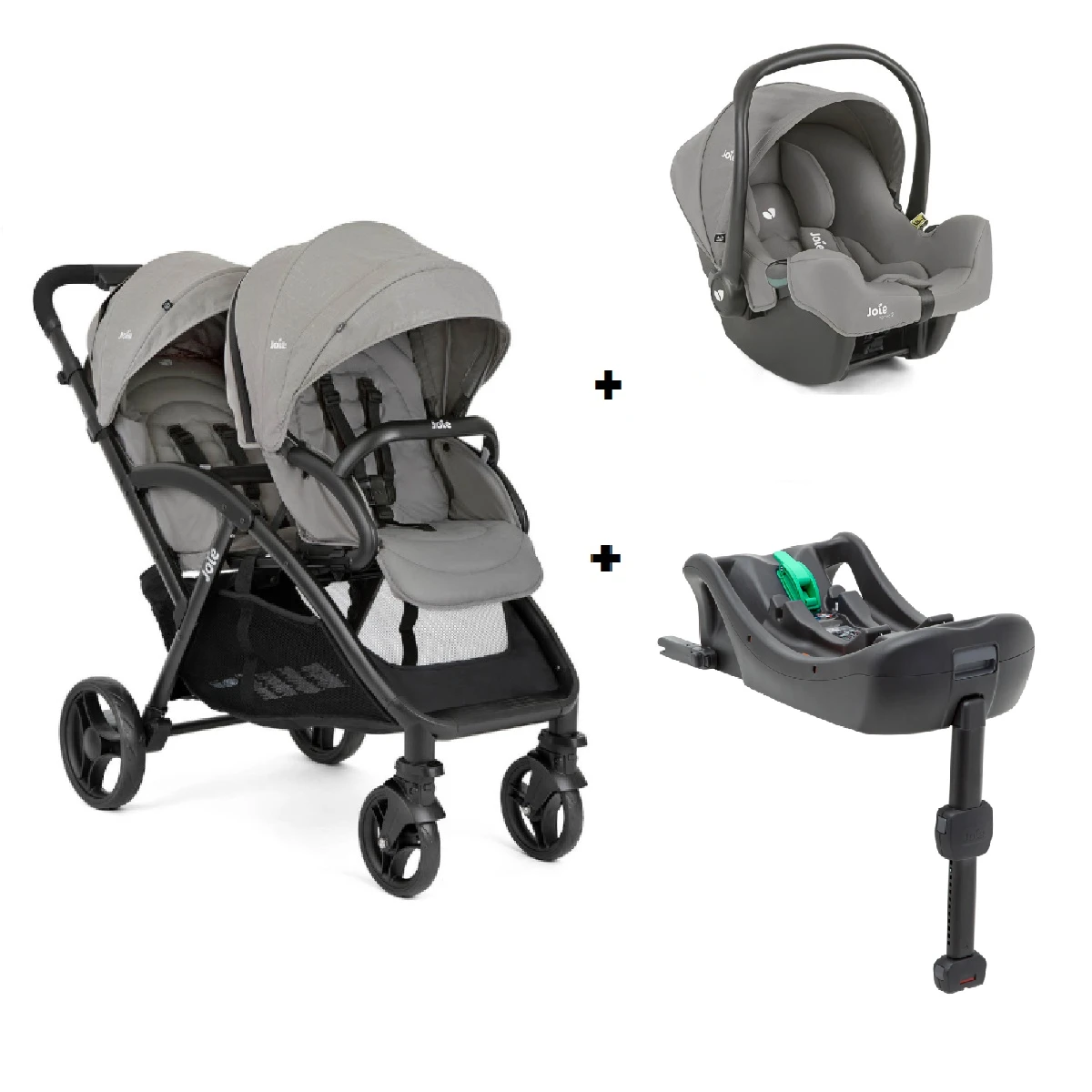 Joie EvaLite DUO Stroller Pebble with Car Seat is one of the lightest double pushchairs available, weighing in at just 10.65kg! Suitable from birth to 15kg!