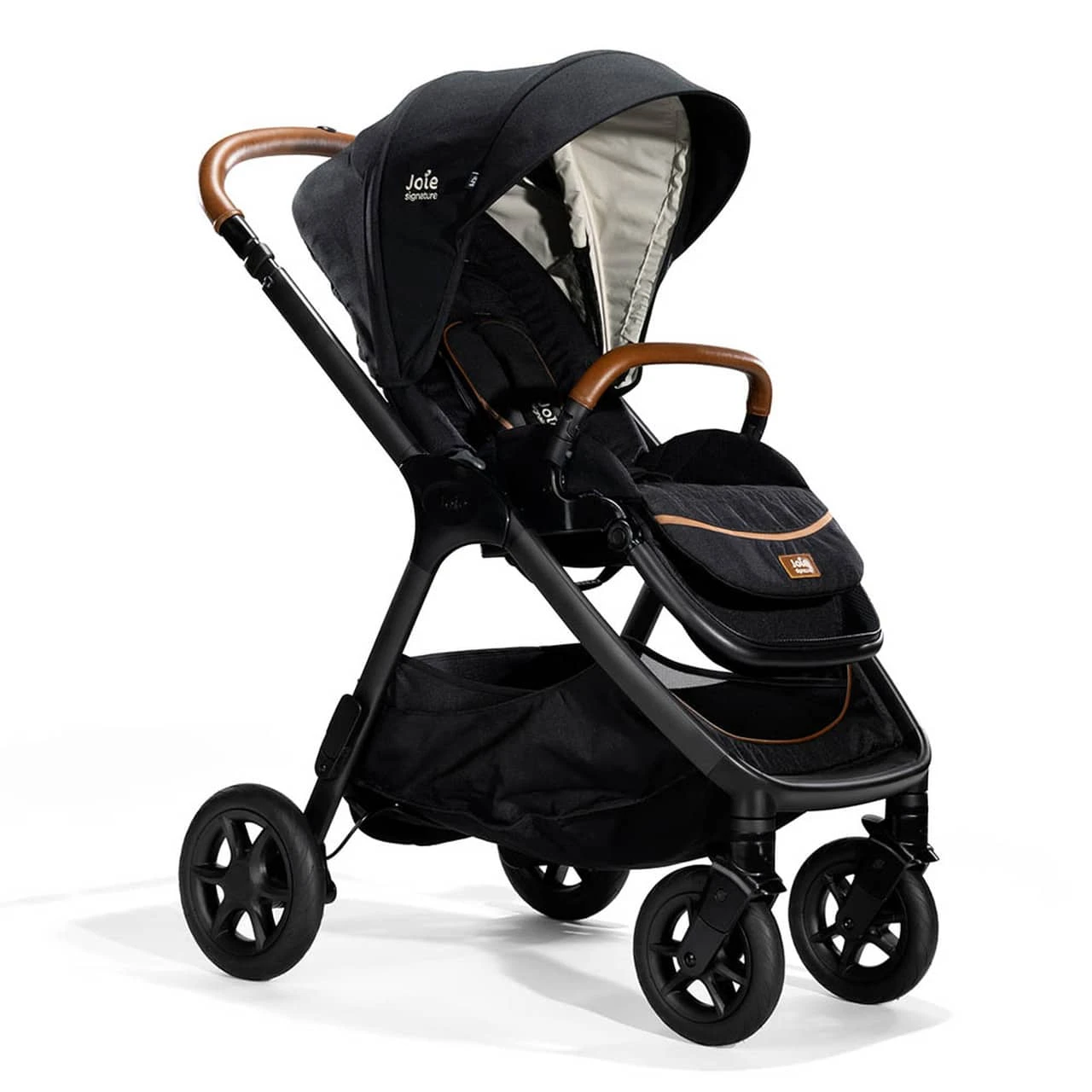 Joie Finiti Flex Bundle with Calmi β Eclipse is suitable from birth up to 22kg.Β Compact design with elegant matt aluminum chassis and reversible seat.Β It comes with all-wheel suspension and all-terrain puncture proof tires with front swivel system. Quick action parking brake will keep the stroller in place.
