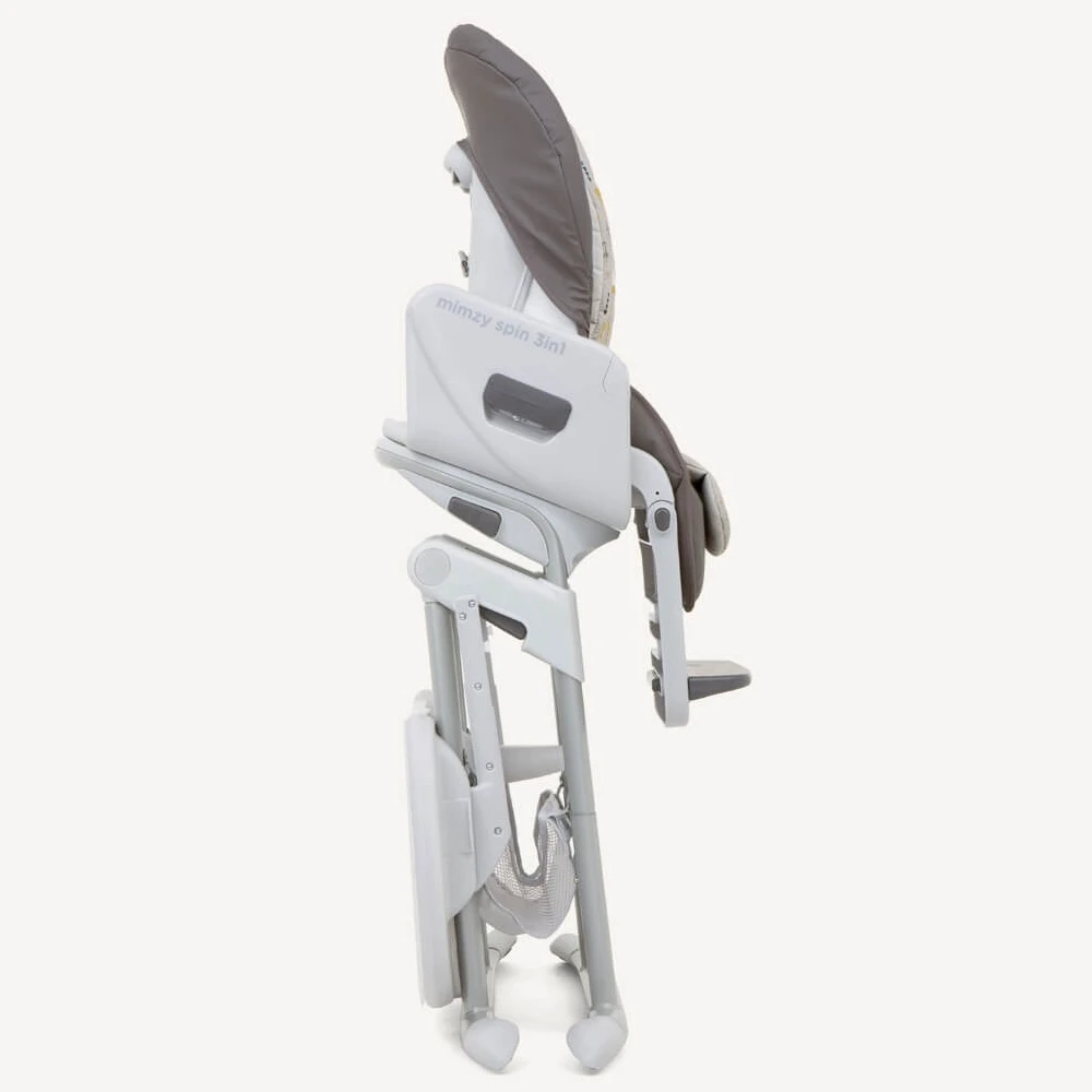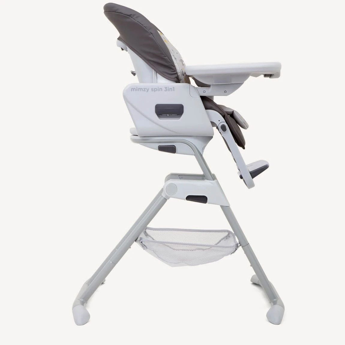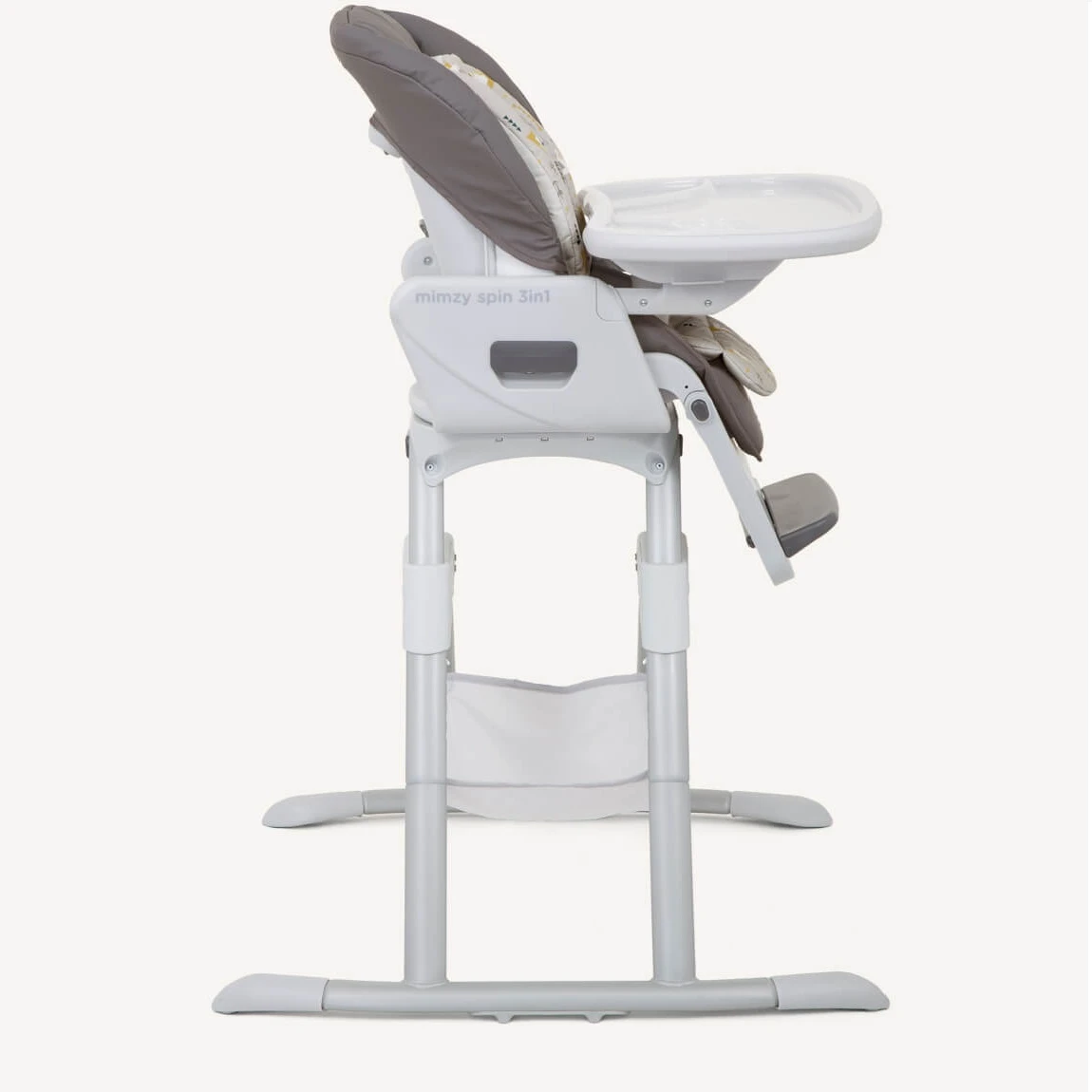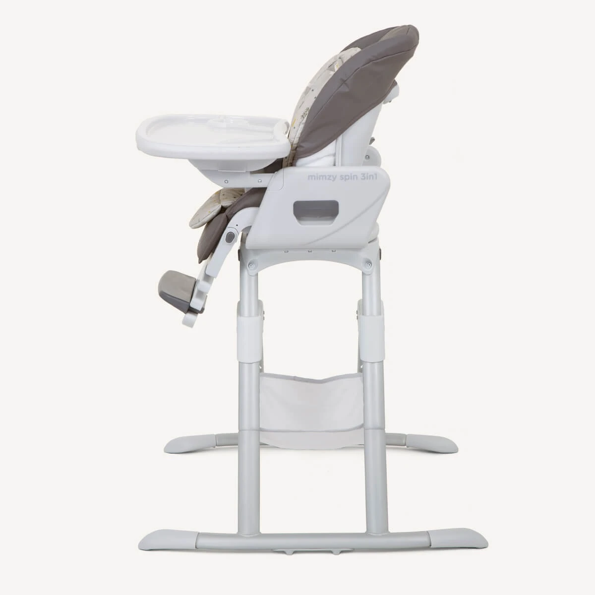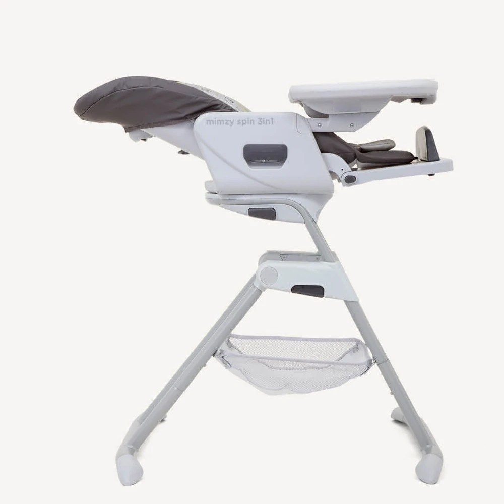 The mimzy spin 3in1 highchair lets you easily turn baby to mum and dad wherever they are with a seat that swivels in a full circle and locks into 4 positions.