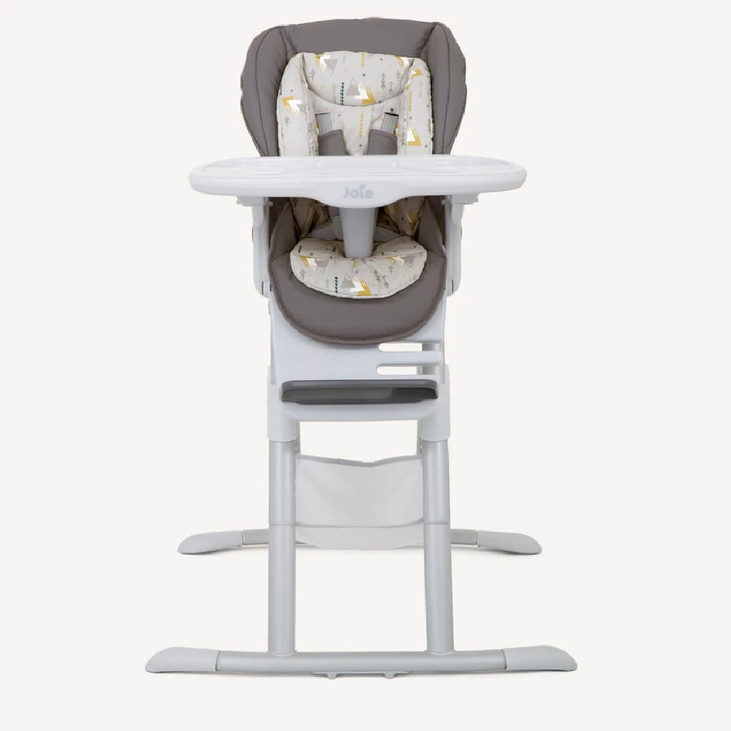 Joie Mimzy Spin 3in1 Geometric Mountains is a spinning highchair that helps you cover all the parenting angles from birth with a full circle swivel seat & infant-friendly tilt.