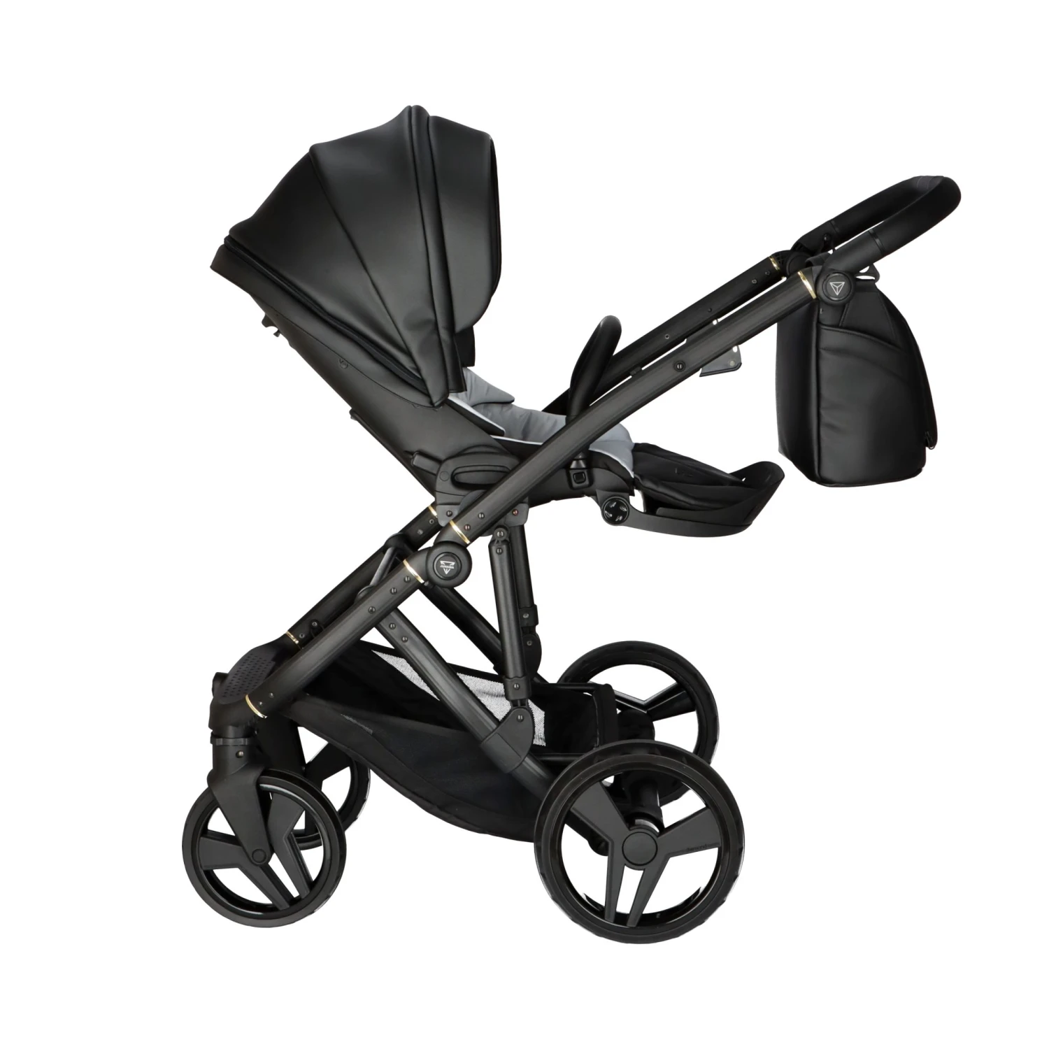 The height adjustable handle bar can be adjusted 180Β° to suit all members of the family and has an eco-leather finish for utmost comfort. The ingenious folding mechanism allows for a compact collapse, the chassis can fold together with the pushchair seat unit attached, protecting the upholstery and ensuring hygiene.