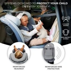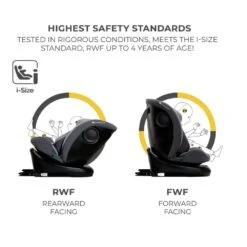Thanks to the EASY SPIN 360Β° system, you can quickly rotate the car seat to face you to be able to fasten the child properly.Β I-GROW allows for rearward-facing (RWF) transportation of children up to 4 years old (up to 105 cm).Β Β The RWF position is up to 5 times safer in the event of frontal collisions and should be used to transport the child for as long as possible.