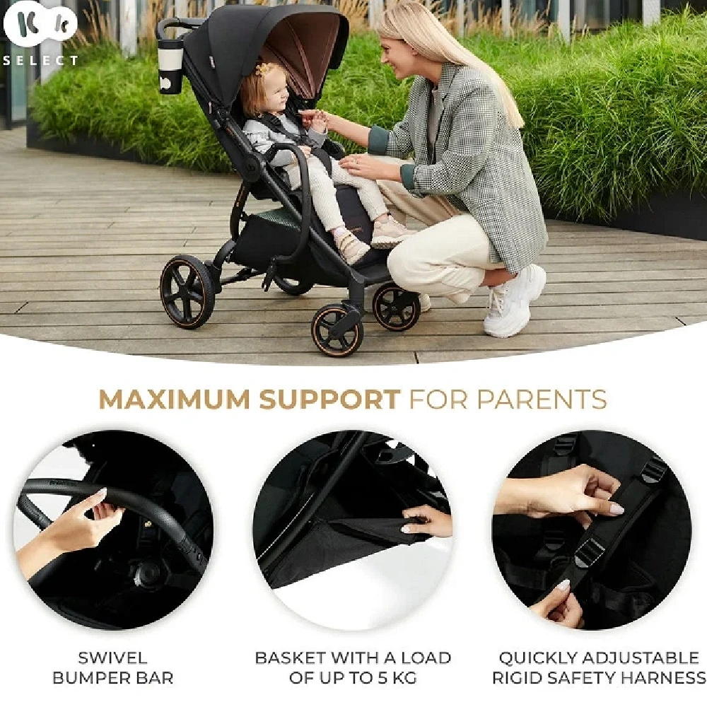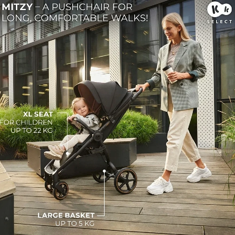 The Kinderkraft Mitzy Pushchair Ink Black is perfect from the first months of life and can carry a load of up to 27 kg*.Β It is equipped with a long XL seat that can accommodate even an older preschooler.Β Your child will be comfortable both during short walks and longer trips. * Maximum child weight: 22 kg, maximum basket load: 5 kg.