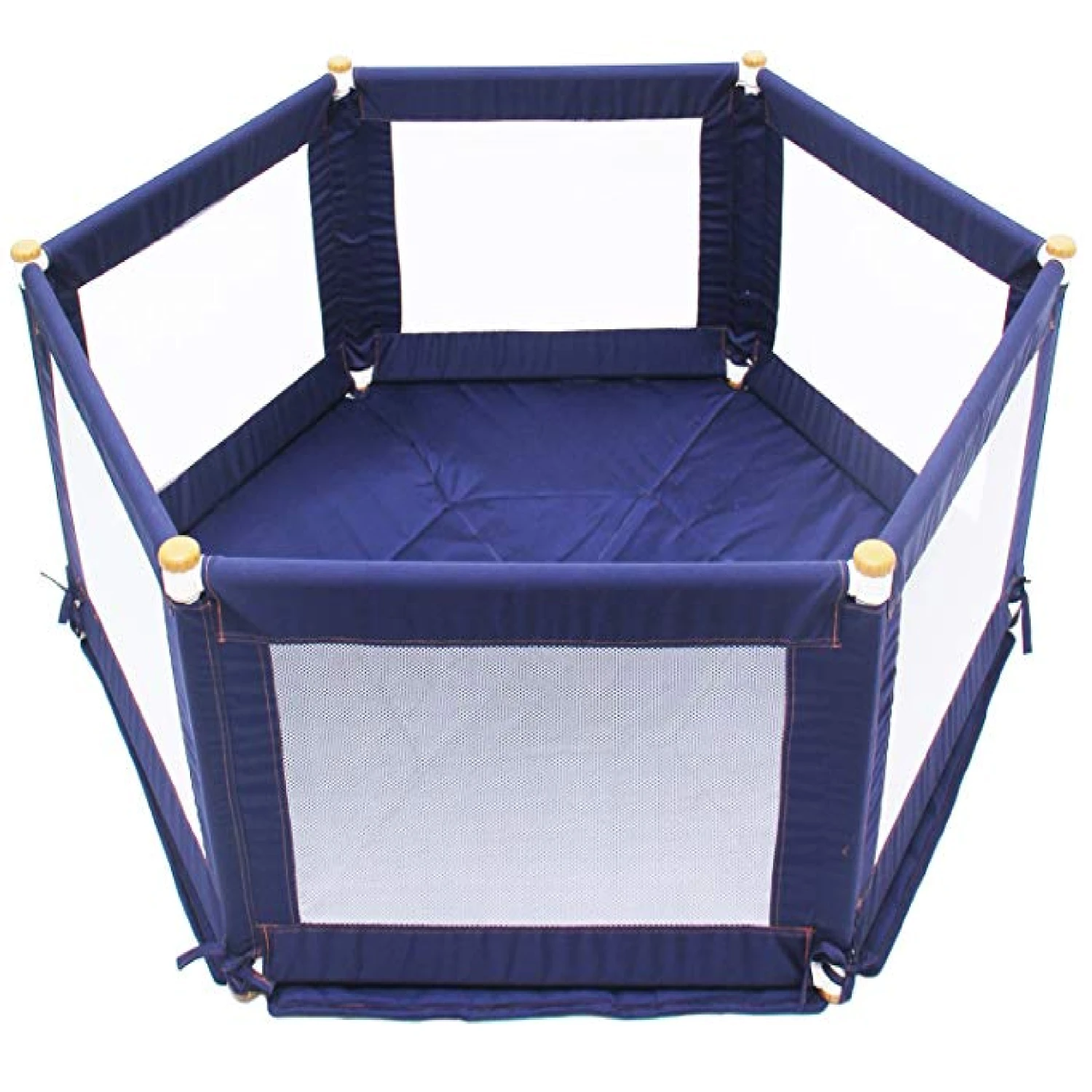 An important feature of this playpen is the non-slip rubber feet. This feature provides added assurance that your baby is safe and secure. Also, there are large free-flow netting windows in every panel so you can see in and your baby can see out.
