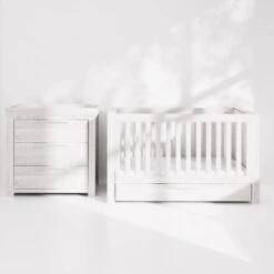 Get all the essentials for your little one’s nursery with this Mamas & Papas Franklin 2 Piece Cotbed Set with Dresser Changer – White Wash. Featuring a cotbed and a dresser changer, you’ll get plenty of storage for all of baby’s bits and pieces.
