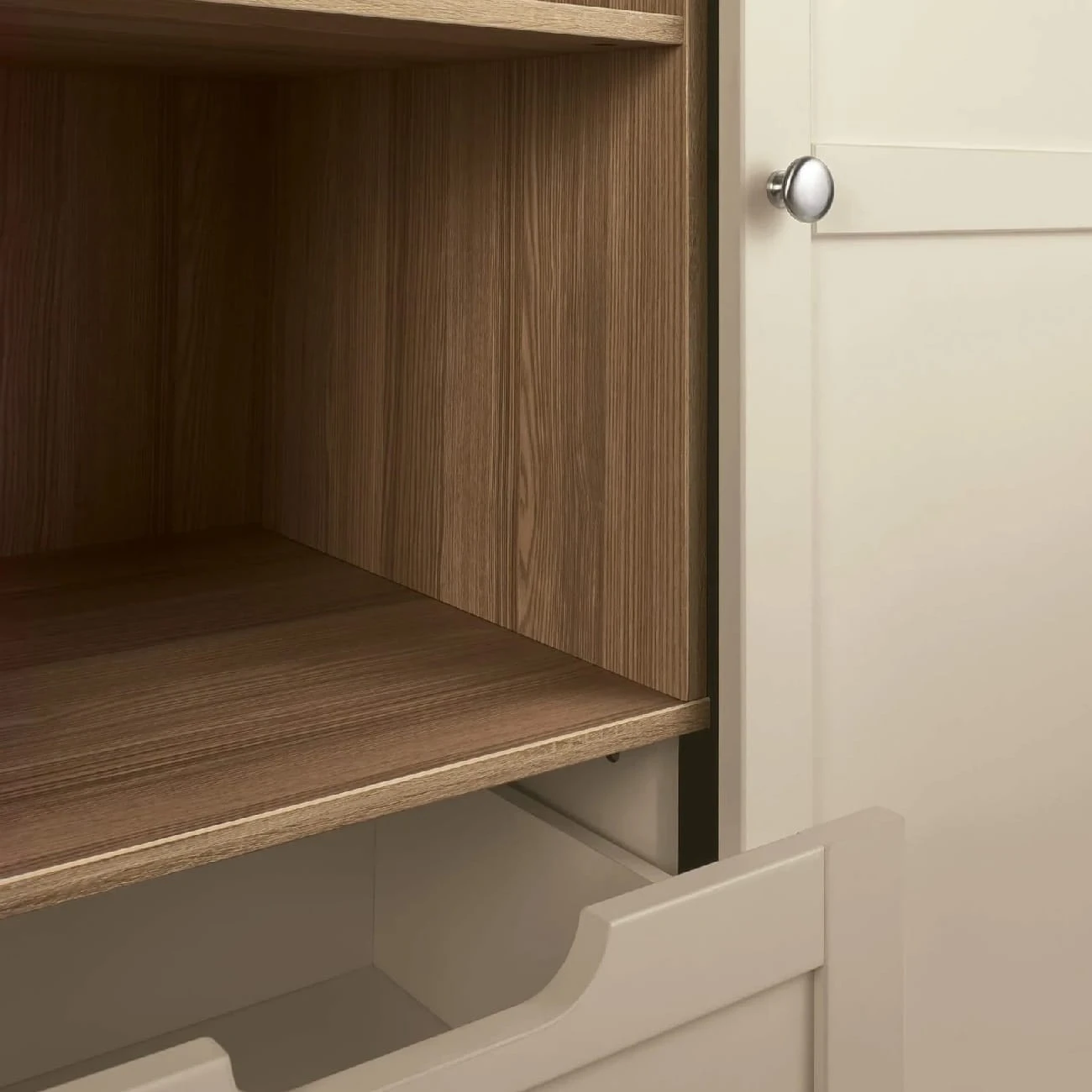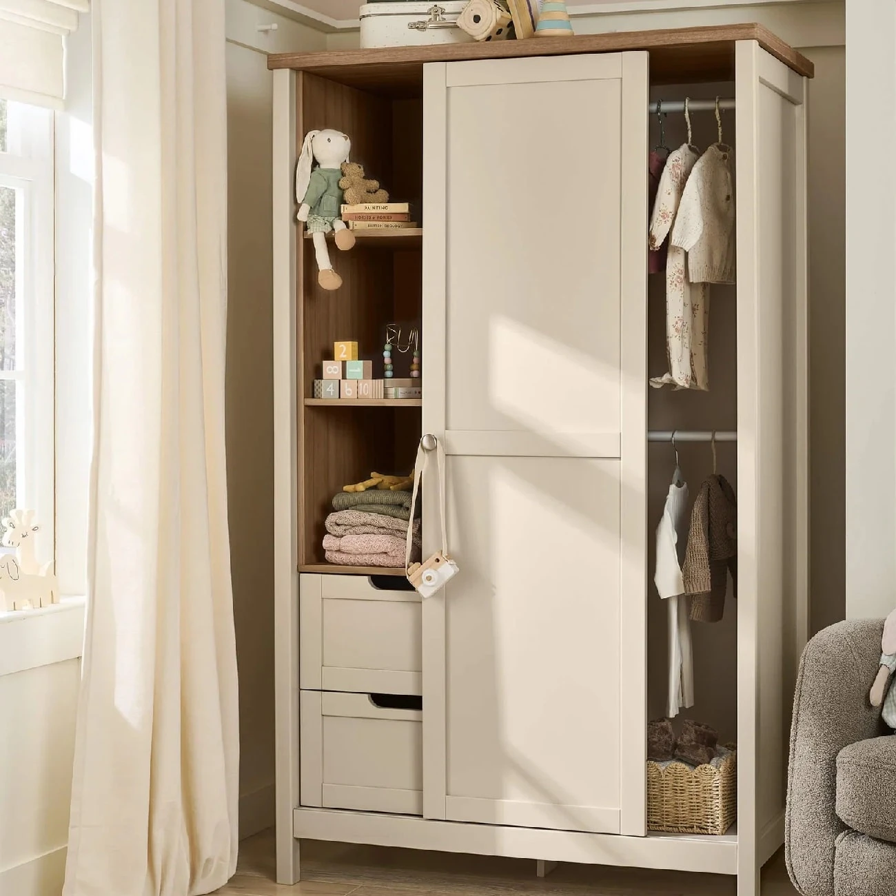 Maintain an impeccably organised nursery with our exceptional Harwell baby wardrobe, designed to keep everything in its rightful place. You can store anything from babyโs favourite books and toys to clean garments and bedding, thanks to the easy-to-use sliding door, the two removable rails for hanging clothes, and the three removable shelves included in this unit. Additionally, the drawers in the wardrobe include a soft closing feature so that you wonโt wake up baby.
