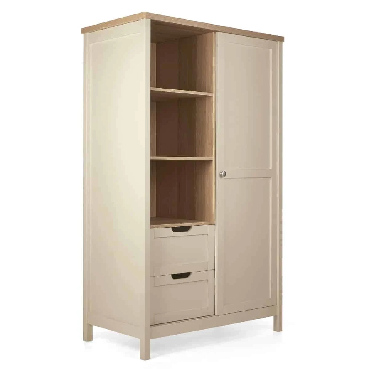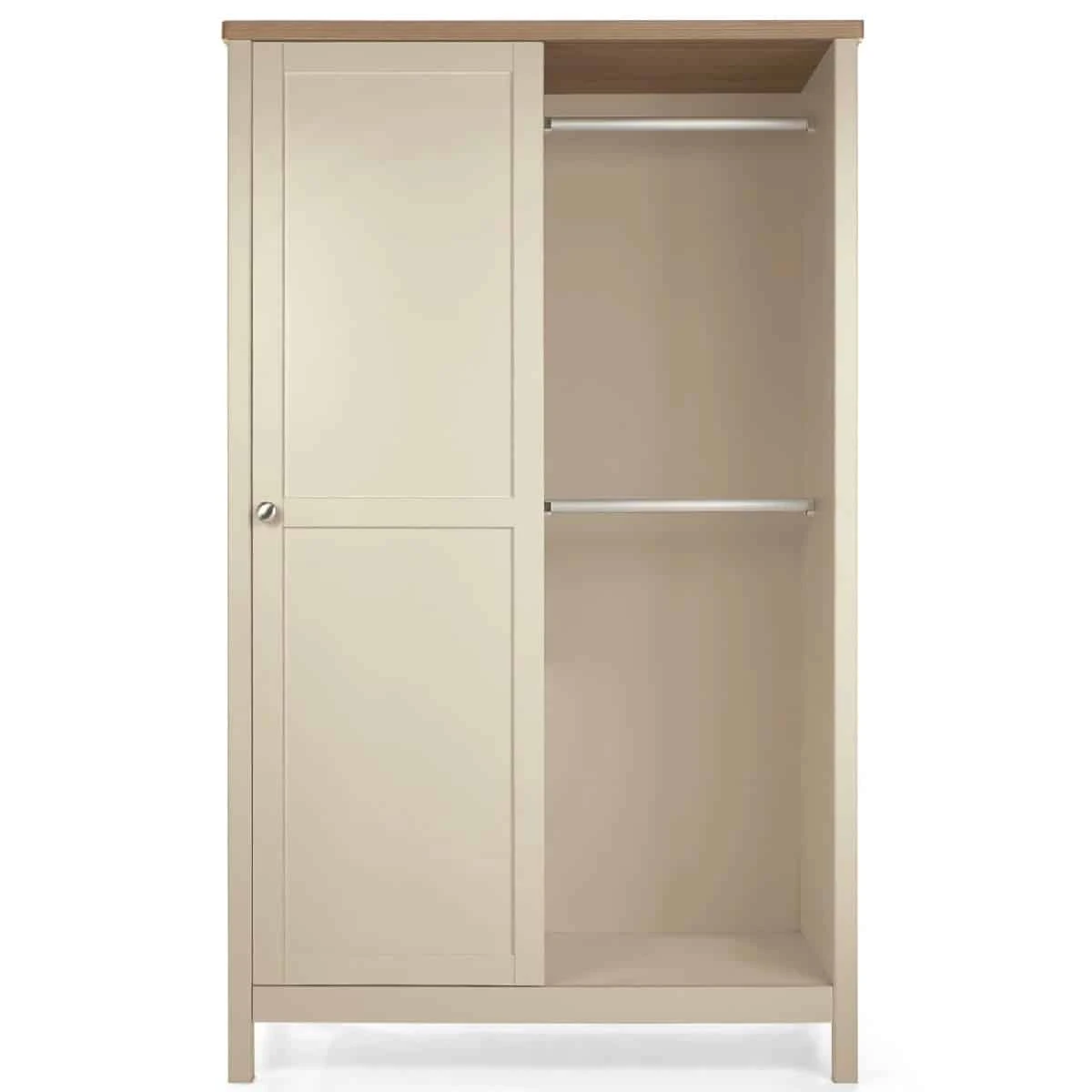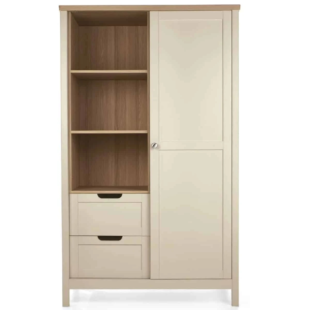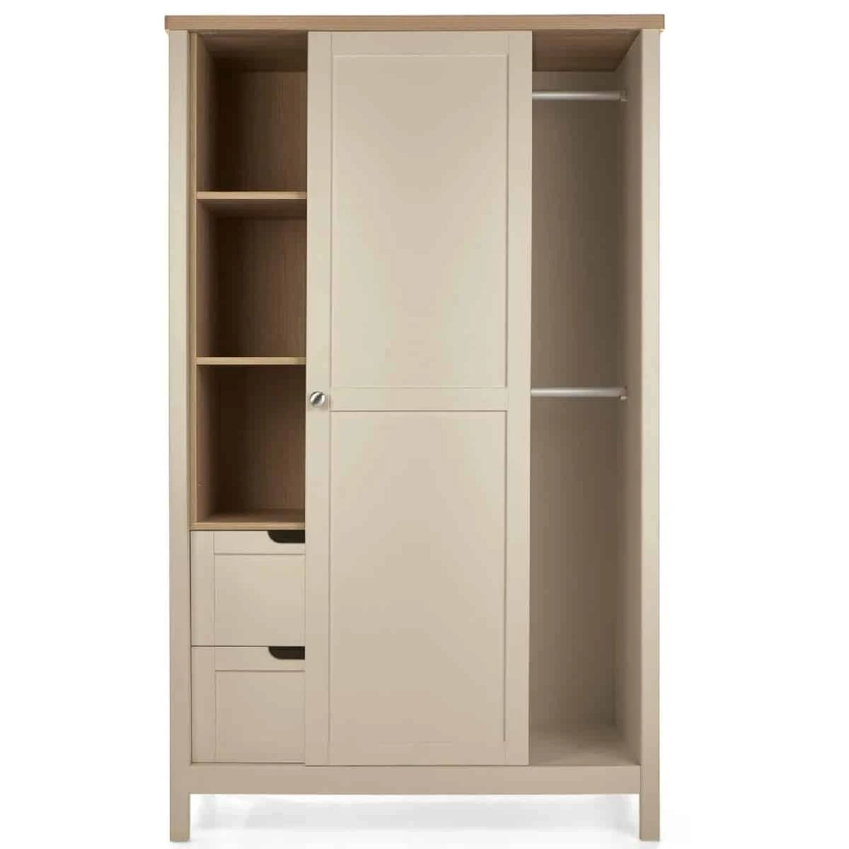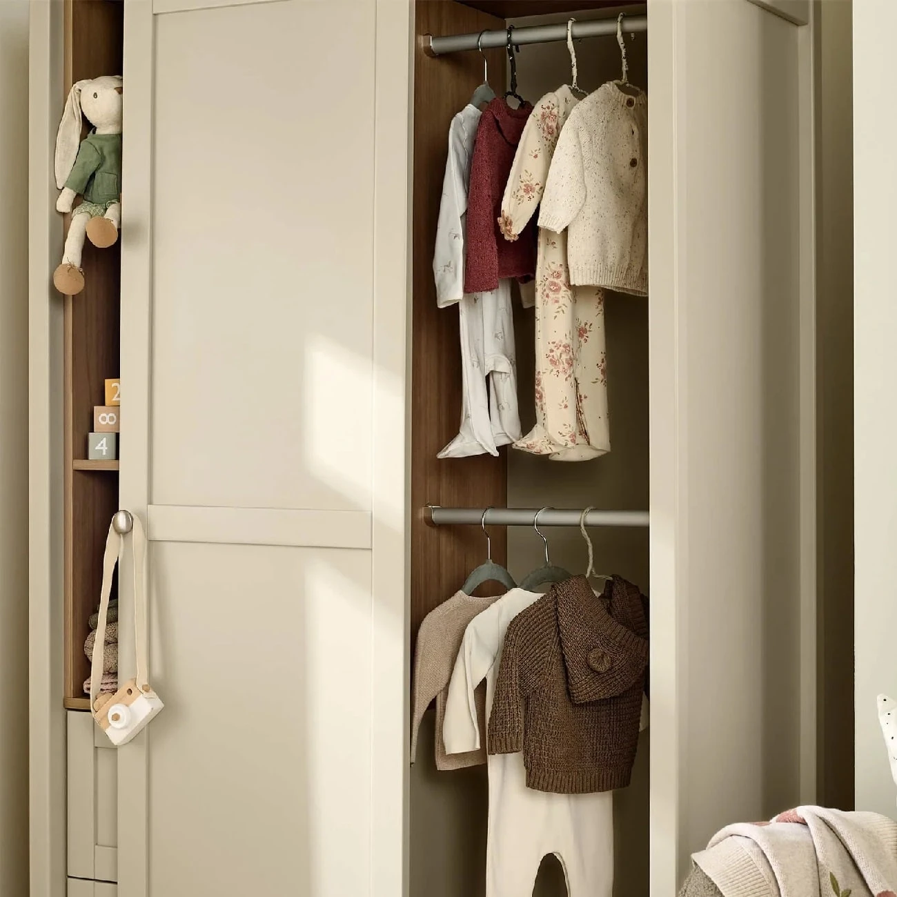 - Wardrobe features an easy sliding door, ideal for maximizing your nursery space, plus 2 removable hanging rails and 2 removable shelves, allowing you to easily adjust and customize your storage space to suit your needs as they change.