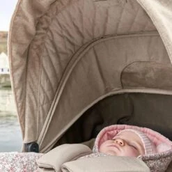 Our Pebble edition is finished with a soft taupe melange fabric and diamond quilted details, dark oak leatherette, and a dark grey chassis. The lie-back seat is suitable from birth and thanks to multi-recline positions, baby can comfortably sit up and watch the world go by, then snuggle down for a snooze when itβs naptime.
