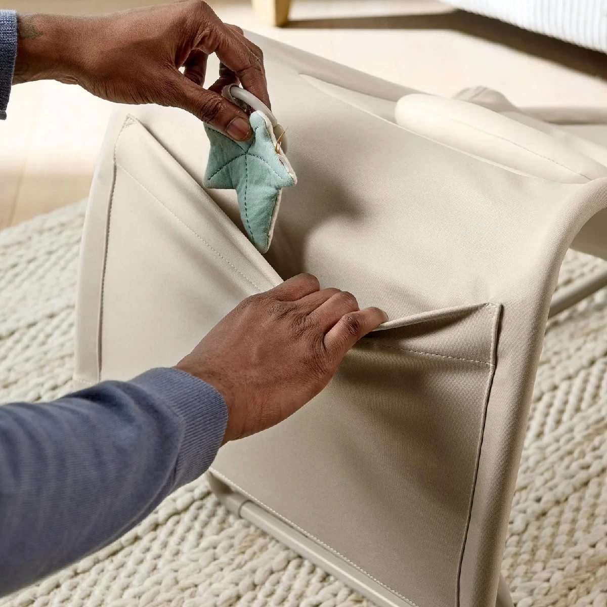 - Handy storage pocket ideal for storing small items safely away from babyβs reach.
