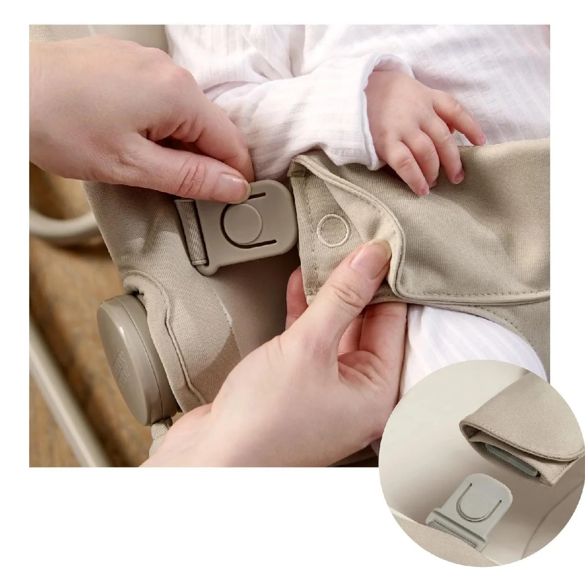 The detachable toy bar moves easily up and down allowing you to smoothly get baby in and out.Β The bar comes with 2 sensory development toys for added entertainment.Β You can have peace of mind that your baby is comfy and secure, thanks to Tempoβs soft yet supportive seat, nip-proof 3-point harness and protective head hugger pillow.