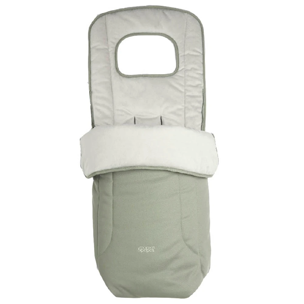 Mamas & Papas Vardo Footmuff Sage can be used with the Vardo pushchair. This supersoft footmuff with breathable bamboo fleece lining keeps heat in, to keep baby cosy and dry whatever the weather. The cut out back section allows you to easily adjust the harness as your child grows.