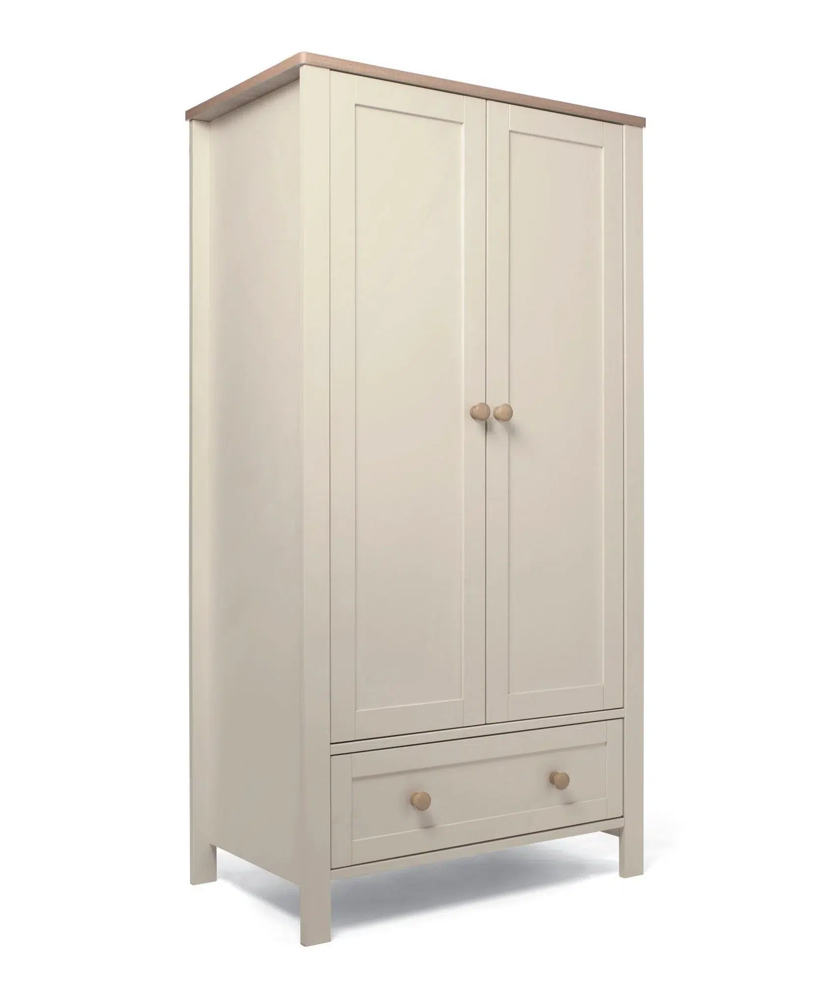 The Wedmore nursery baby and toddler wardrobe, created to meet all of your storage needs, completes this 3 piece nursery furniture bundle.Β This baby nursery wardrobe guarantees a clutter-free environment with plenty of room for hanging clothing, shelves for folded items, and additional drawers. It becomes simple to arrange your babyβs clothing, blankets, and accessories, which brings calmness and order to the nursery.