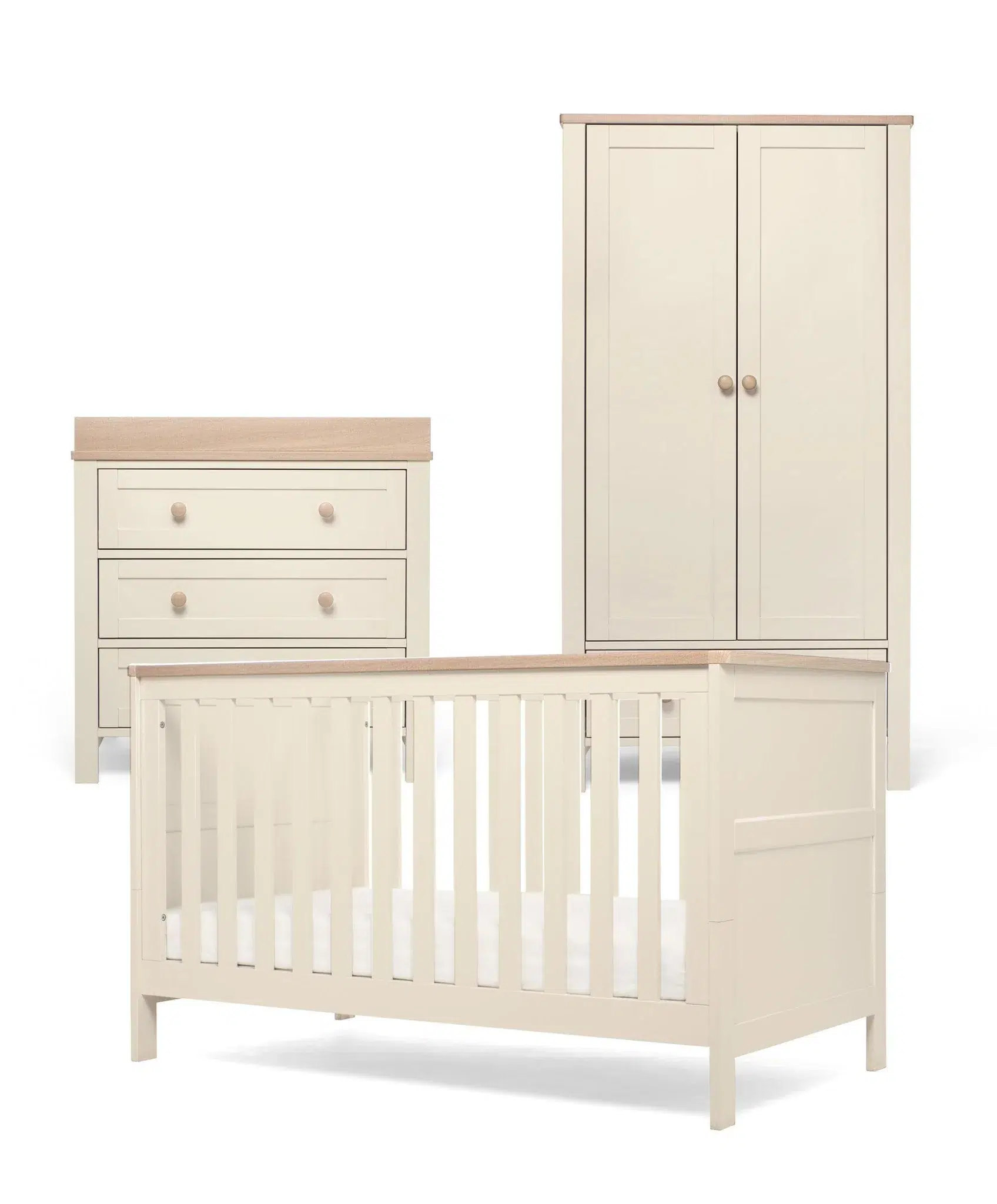Thanks to a baby cot bed that converts into a toddler bed and a removable changing top for your nursery dresser, our Wedmore 3-piece nursery furniture set will see baby from newborn into toddler years and beyond. And when itβs time for a nap, the 3 adjustable cot base heights ensure baby is safe as they grow bigger and become more mobile.