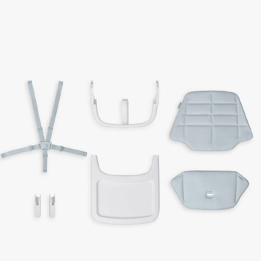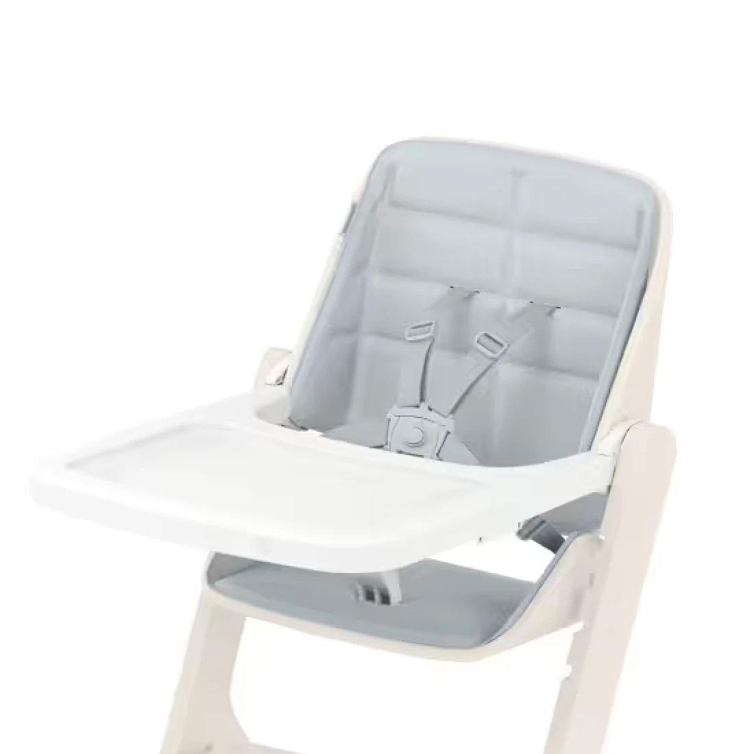 The unique high backrest offers great support as your little one learns to sit and eat around the table with the family. The kit includes an easy-to-clean, water-repellent, machine washable fabric inlay which is made from 100% recycled fabrics. As well as a tray, T-bar, extension feet for increased stability and safety and a harness to keep your little one comfortably in place.