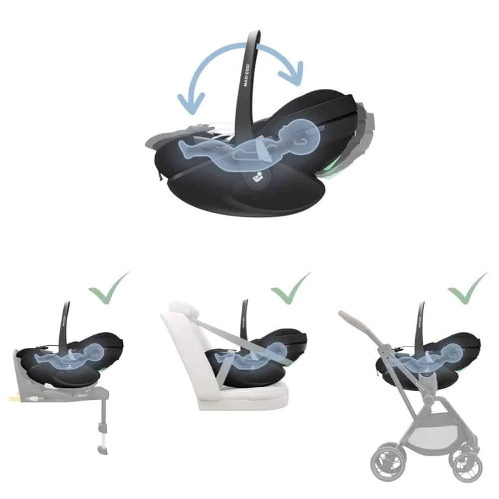 The Pebble 360 Pro delivers maximum sleep comfort for your baby, from birth to 15 months.Β The seat features three recline positions (including a superior full lie-flat position) which can be used in the car and attached on a pushchair.Β The lie-flat position offers a more natural sleeping position.Β This helps keep their airways open and allows them to breathe more easily.