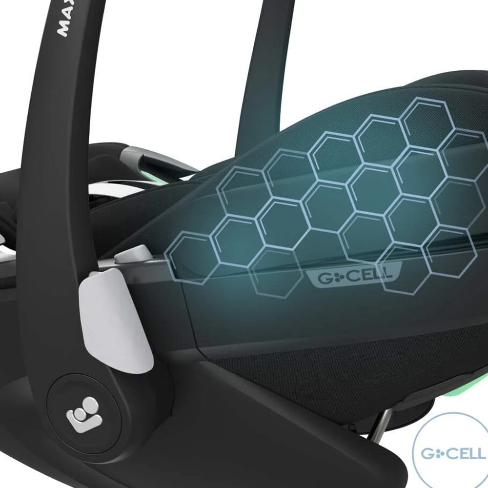 When used with the rotating FamilyFix 360 Pro slide out base (sold separately), you can effortlessly rotate and slide your child toward you.Β The Easy-in harness adds even more convenience.Β Allowing you to fasten your baby in with minimum fuss. On the road, Maxi-Cosiβs integrated G-CELL Side Impact Protection provides superior safety.