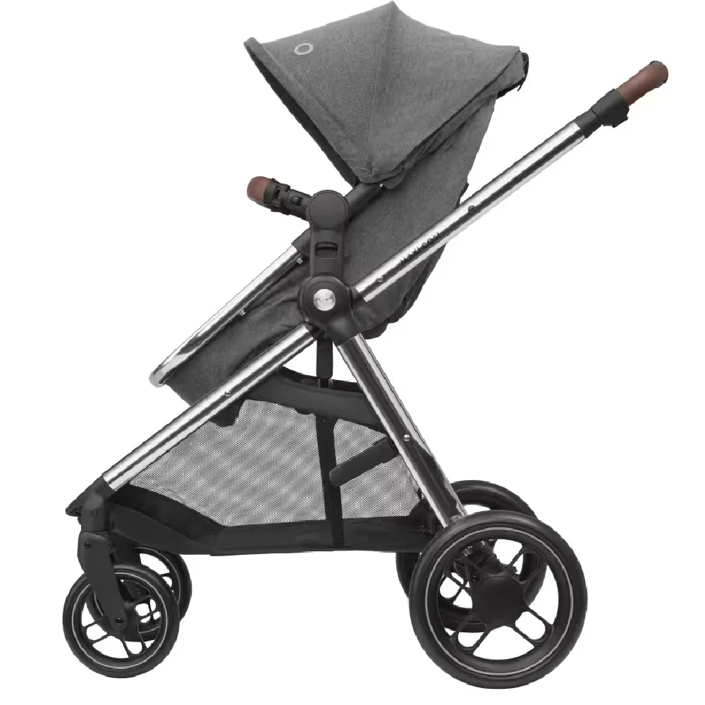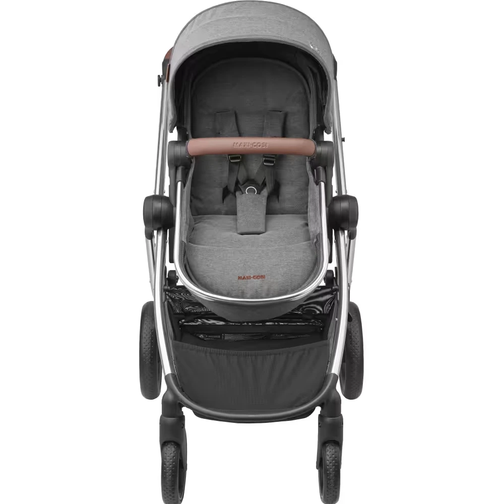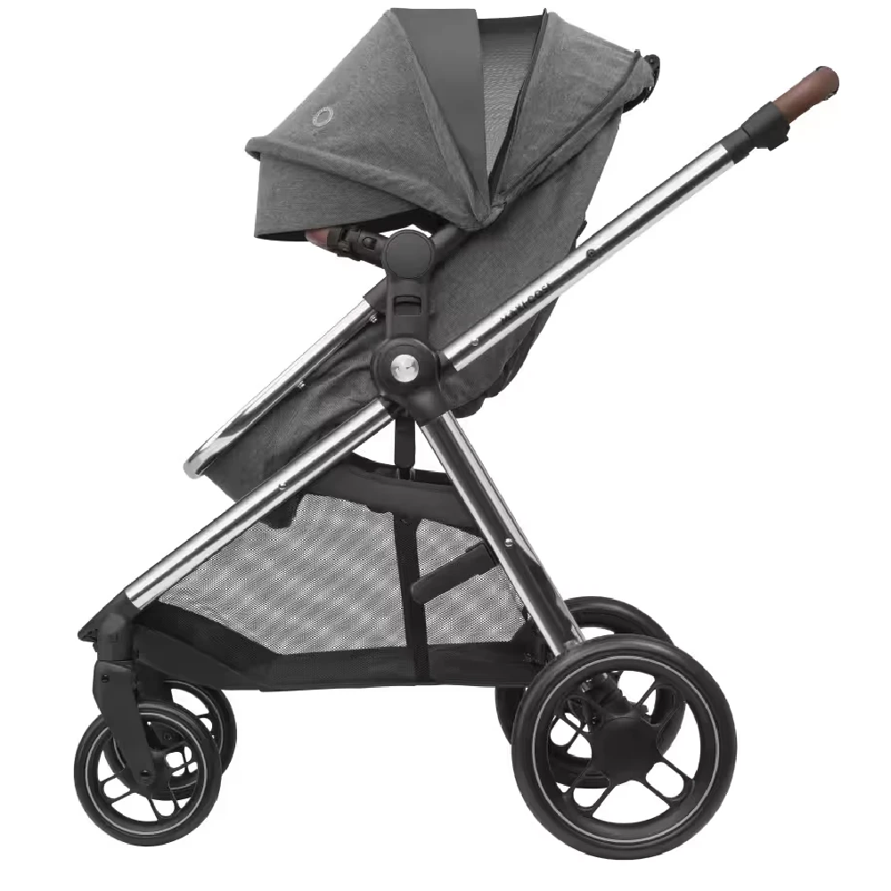 The Maxi-Cosi Zelia³ Luxe i-Size Travel System – Twillic Grey is a luxury pushchair with a carrycot that transforms into a comfy seat. The Maxi-Cosi Cabriofix i-Size Car seat can be attached to the chasis to creat a great Travel System. Giving you that next-level luxury for stylish travel.