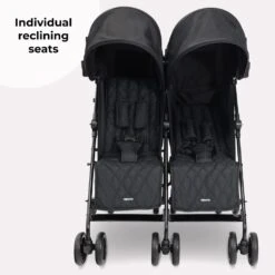 With just one hand you can lie-flat the seats individually. The double stroller has an easy-to-use umbrella fold and folds down neatly and compactly.