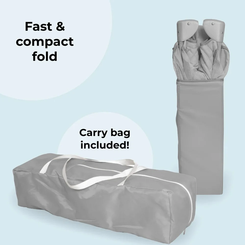 This My Babiie Elephants Travel Cot is quick and easy to assemble and looks gorgeous. This travel cot can double up as a Playpen and is a must have travel essential for babies. This great value travel companion is suitable from birth and comes complete with a handy carry bag with handles.