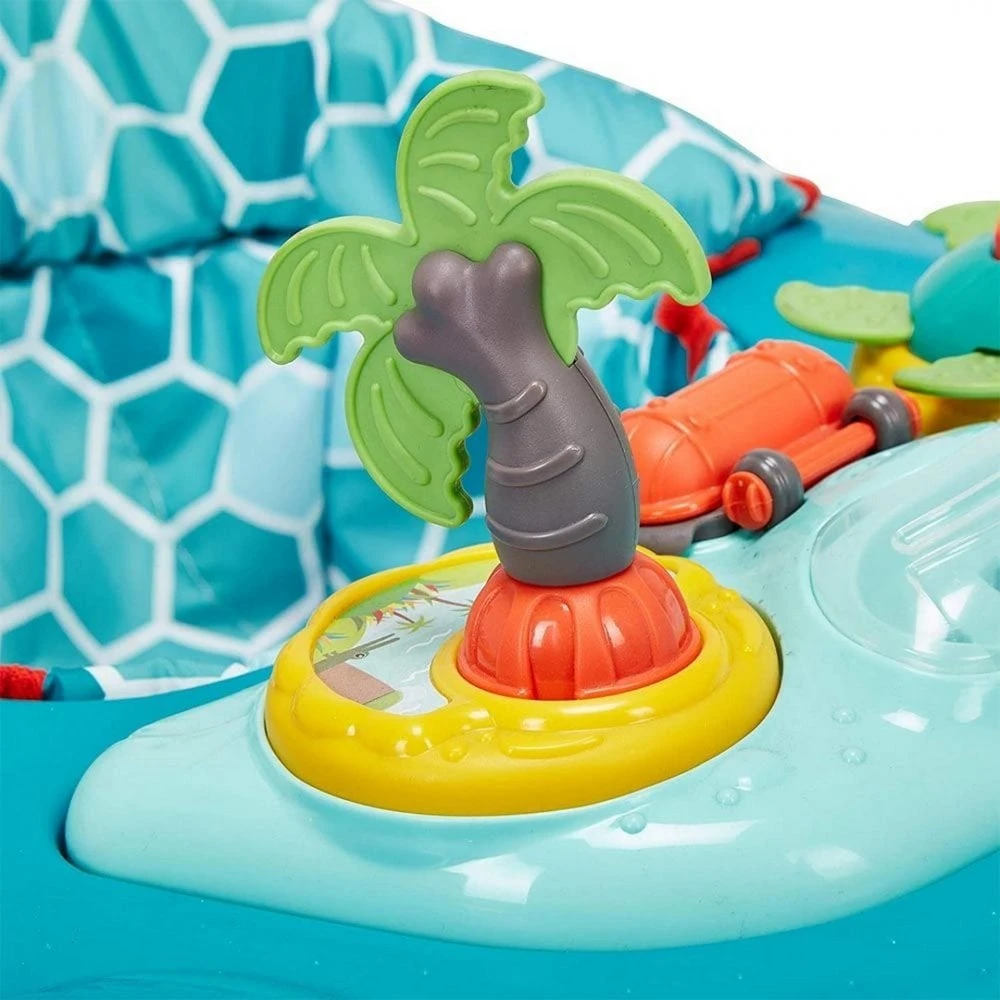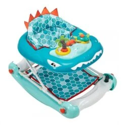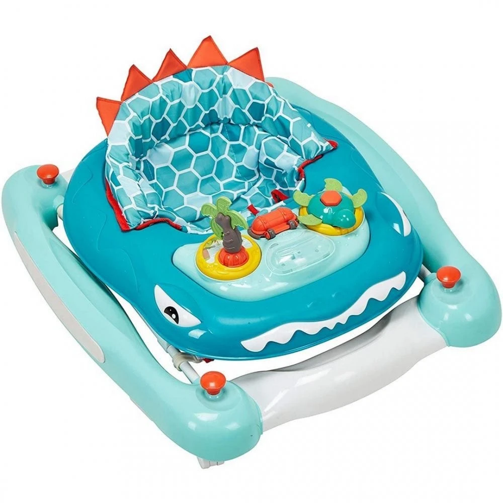 This walker/rocker has a removable island themed play tray with toys designed to encourage fine motor skills and cognitive development. Press the value for lights and sounds and to watch the turtle wiggle his flippers!