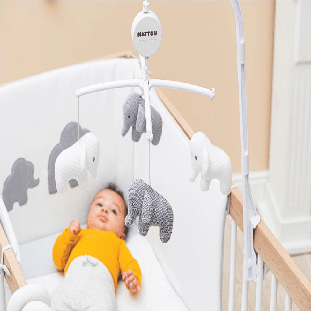 The Nattou Musical Mobile Tembo Elephant is perfectly suited to attach to children’s cribs or beds. The toys and the melody will lull your baby to sleep. The toys can be easily removed for washing separately.