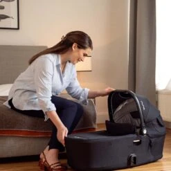Nuna DEMI NEXT Carry cot β Caviar converts your DEMI NEXT stroller into a pram suitable from birth or double for family adventures. This carrycot cradles your baby with a lie-flat comfort during those tender early months.