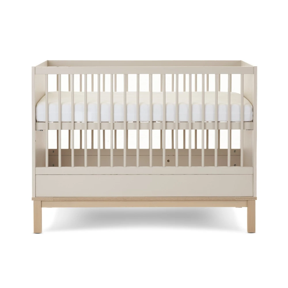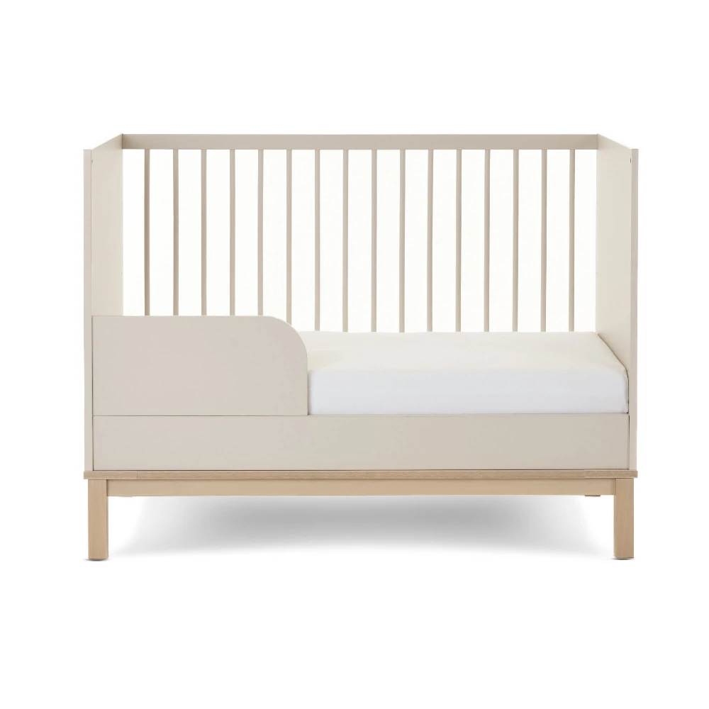 The Obaby Astrid 4in1 means those with a more compact nursery donβt have to compromise on quality and style. Mini by name, but certainly not by nature! Suitable from birth until approx. 4 years old, the 3-position base height ensures there is a setting for each of your childβs milestones. When it is time to transition to a big bed the included safety rail will provide reassurance and familiarity during an often-daunting time.