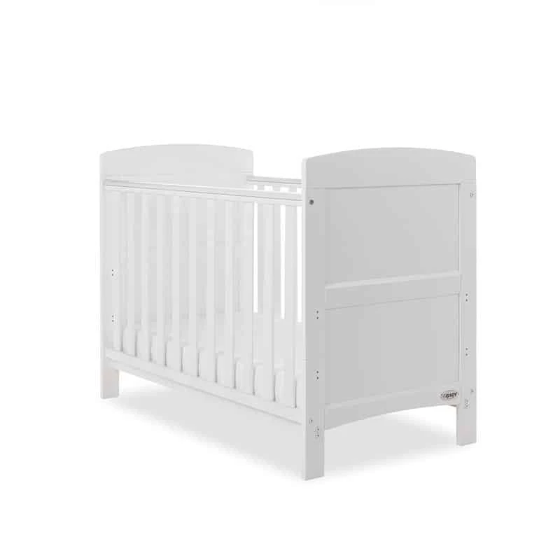 Our simple but stunning mini cot bed thoughtfully utilises clean and contemporary design to become a perfect fit for the smaller nursery. The open slatted sides are perfect for watching over your little treasure during their most peaceful times and the presence of teething rails ensures their delicate teeth are protected. As your child grows, learning to sit and stand, the mattress base can be lowered, with three base heights available in total, providing extra security and reassurance. Then by simply removing the fixed sides and splitting the end panels, the cot bed converts seamlessly from a cot into a cosy and stylish junior bed, meaning minimal disruption during little oneβs often daunting transition. Once the change is complete, the bed can be suitable for a child up to approximately 3 years, meaning the Grace Mini offers maximum durability and great value.