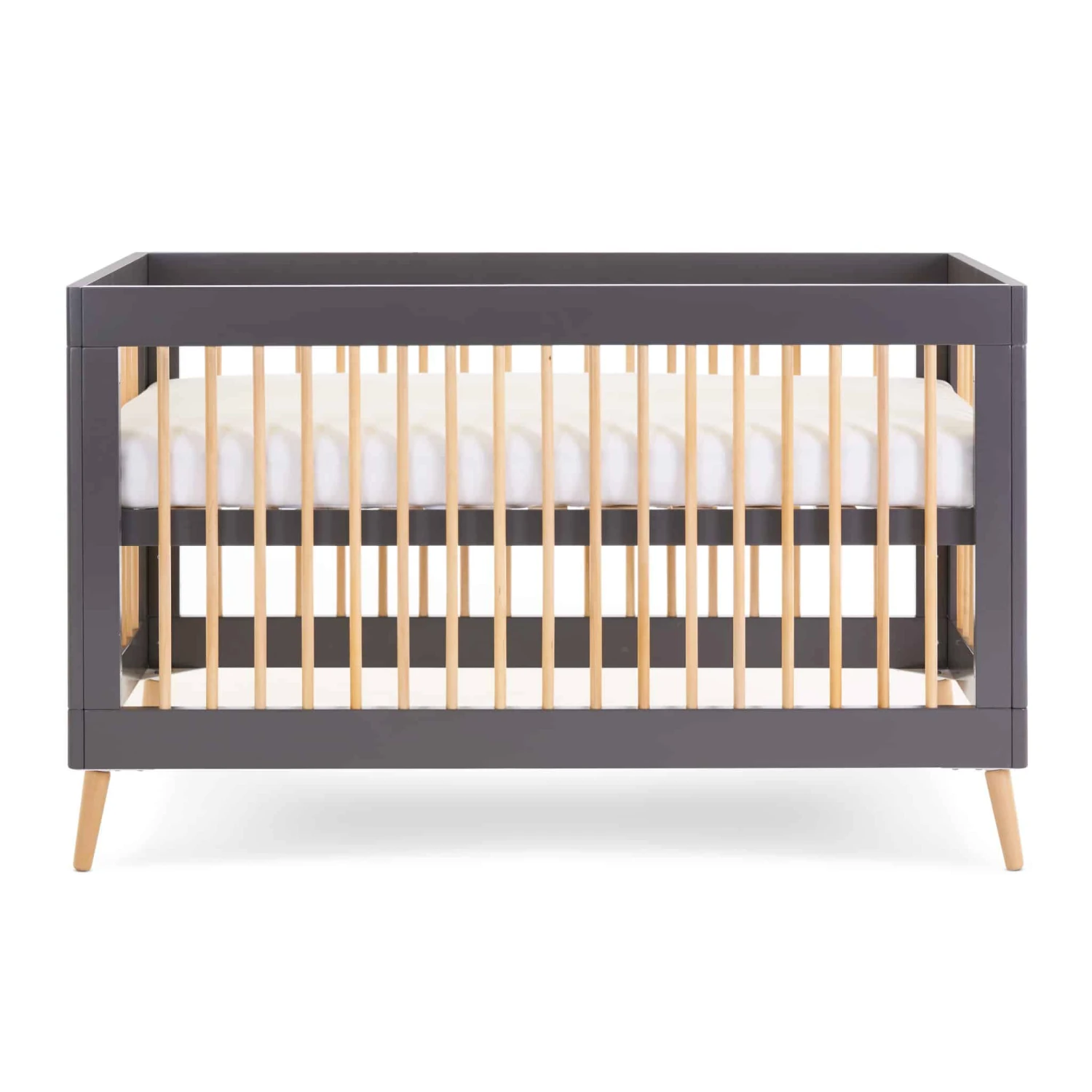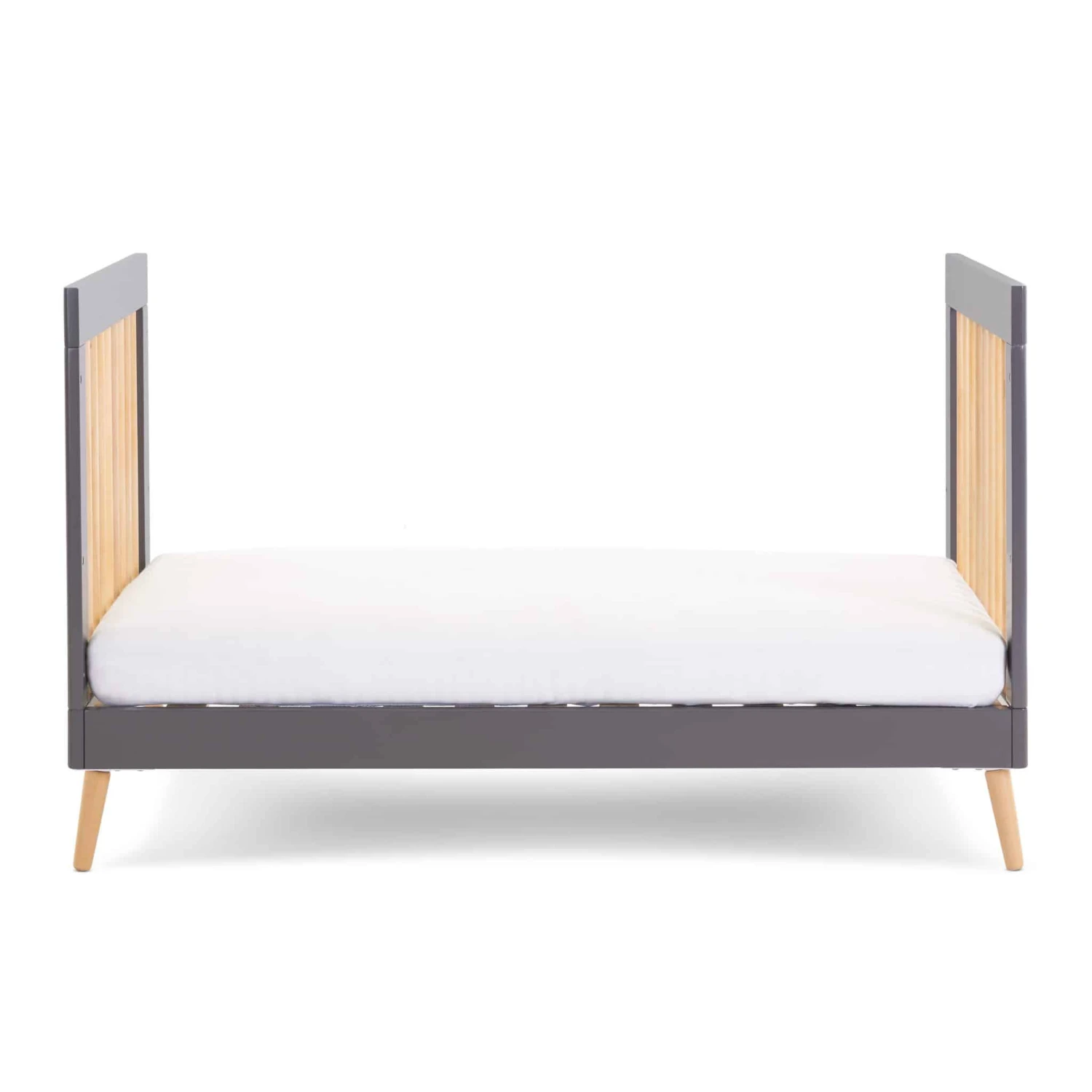 Suitable from birth, the Maya cot bed will grow with your little one. The top position of the three height-adjustable mattress base allows you to put down your baby with less pressure and strain applied to your back and as they develop and start to find their feet, you can maintain their safety by lowering the base. When your little one is ready to begin their transition, the included dual ended safety rail will provide reassurance and familiarity during an often daunting time and once they are used to their βbig bedβ this can be simply removed to create a stylish toddler bed.