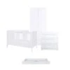 The Obaby Nika range offers a contemporary design, due to its clean lines and textured oak effect finish, that will fit perfectly in todayβs modern nursery. This 3 piece room set consists of Nika cot bed, changing unit and double wardrobe.