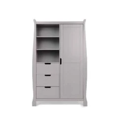 To complete the perfect nursery furniture set is the Stamford wardrobe. The quality of the design is complimented perfectly by the generous storage options available. A full height, soft close door encloses the main cupboard section with 2 hanging rails for storing little oneβs adorable outfits. For the smaller belongings, the left hand side of the wardrobe is divided between 3 height adjustable shelves, with 3 full depth drawers ensuring that thereβs always a perfect place for storing or displaying any precious possessions.
