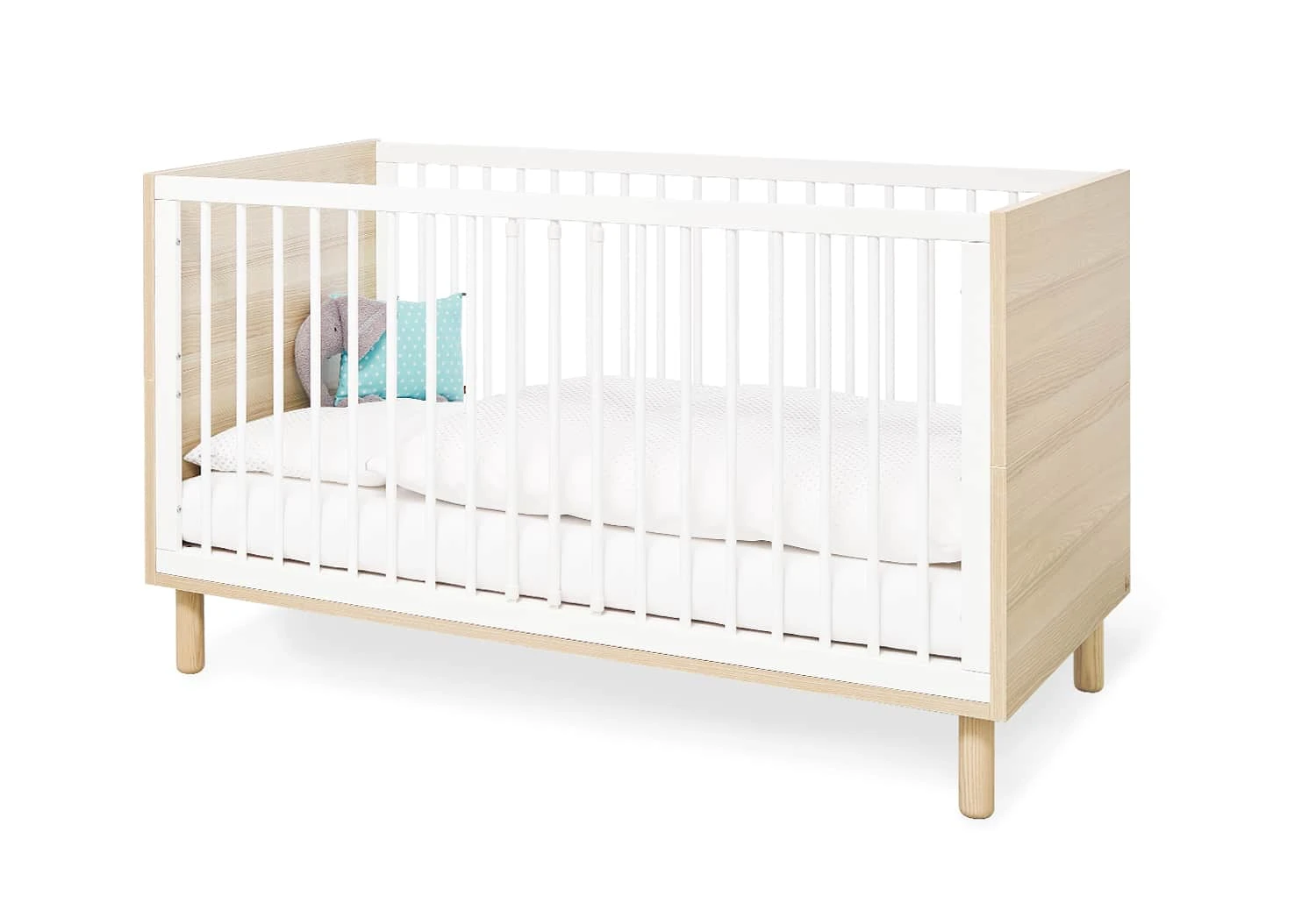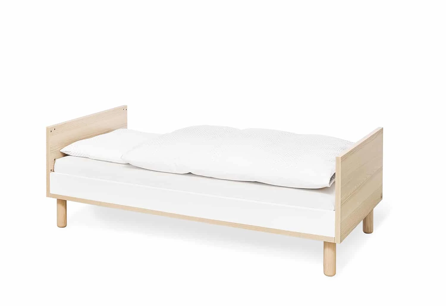 Flow’ is the perfect starter kit for babies: the children’s bed with 3 rungs can be converted into a junior bed and a children’s sofa using the conversion sides. The slatted frame is 3-fold height-adjustable from 22 to 37 and 52 cm