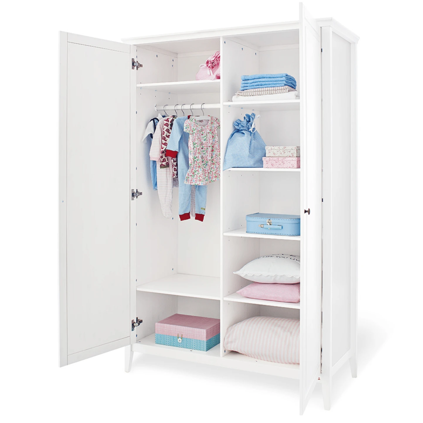 The wardrobe ‘Smilla’ by Pinolino, in the picturesque country house style, gives the nursery a romantic look: it is elaborately worked and offers plenty of storage space with its 2 doors.